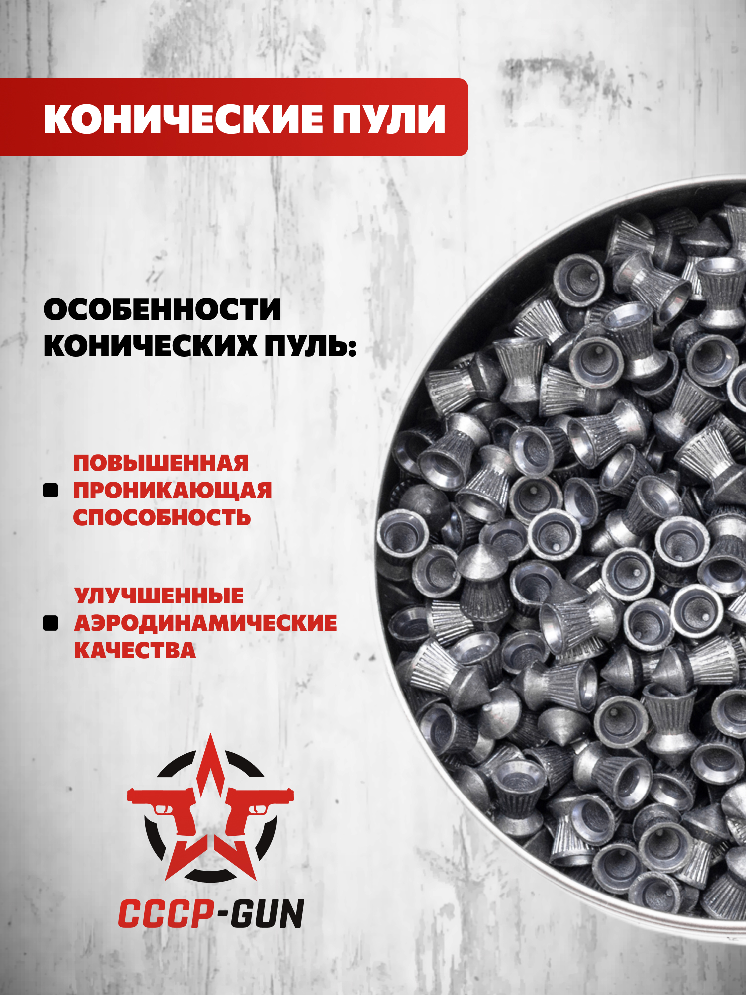 Пули выполнены в калибре 4.5 мм и имеют массу 0.56 г - это показатель, оптимальный для пневматики со средней дульной энергией. Такой вес поддерживает баланс между точностью и достаточной кинетикой, особенно на небольших дистанциях.