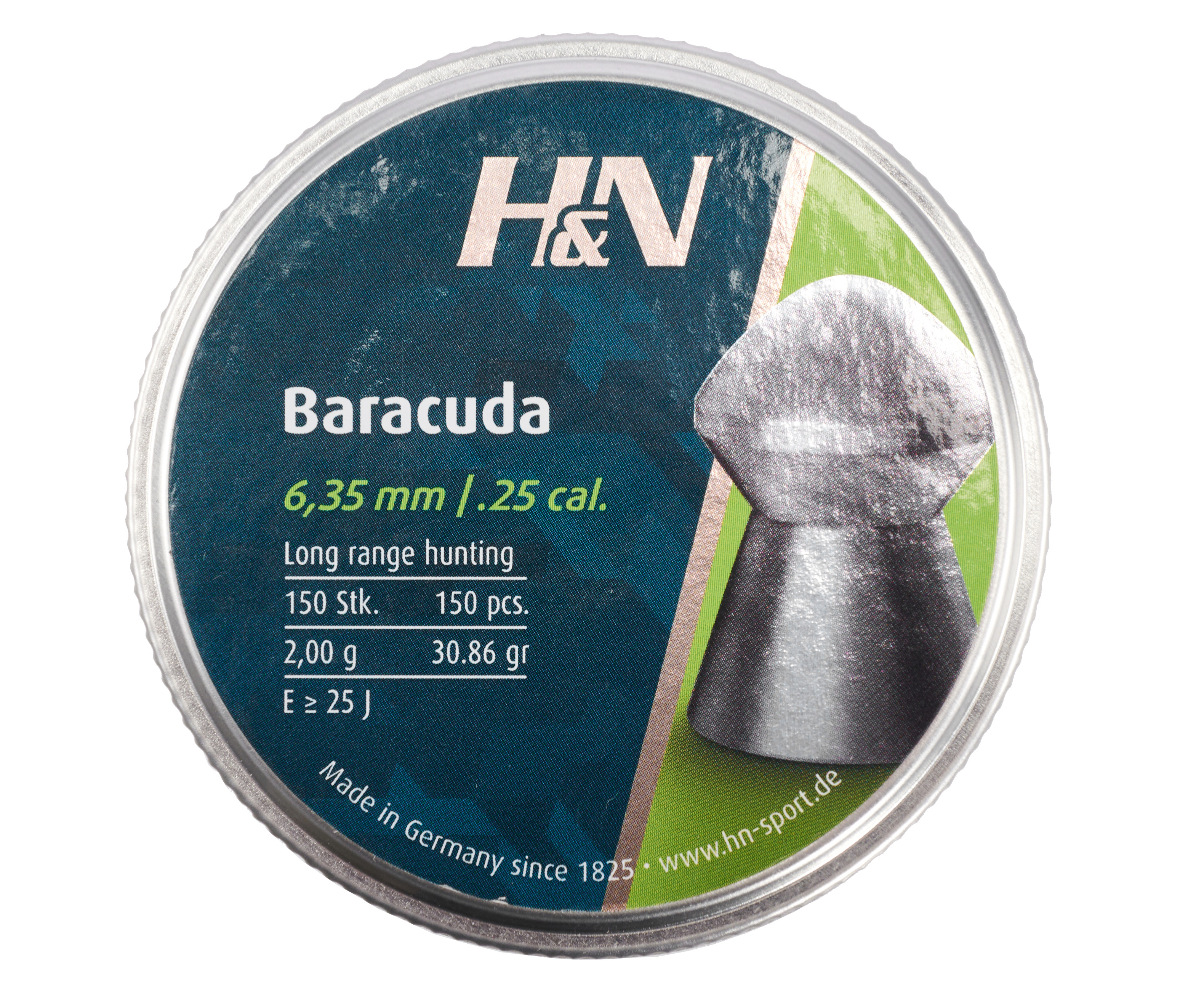 Свинцовые пули для пневматики H&N Baracuda представляют собой классический формат воланчиковых снарядов с полусферическим видом головной части типа Domed. Такое конструктивное решение в совокупности с юбкой в основании помогает боеприпасу правильнее распределять давление для ускорения и разрезать встречный поток, что приводит к предсказуемой траектории.