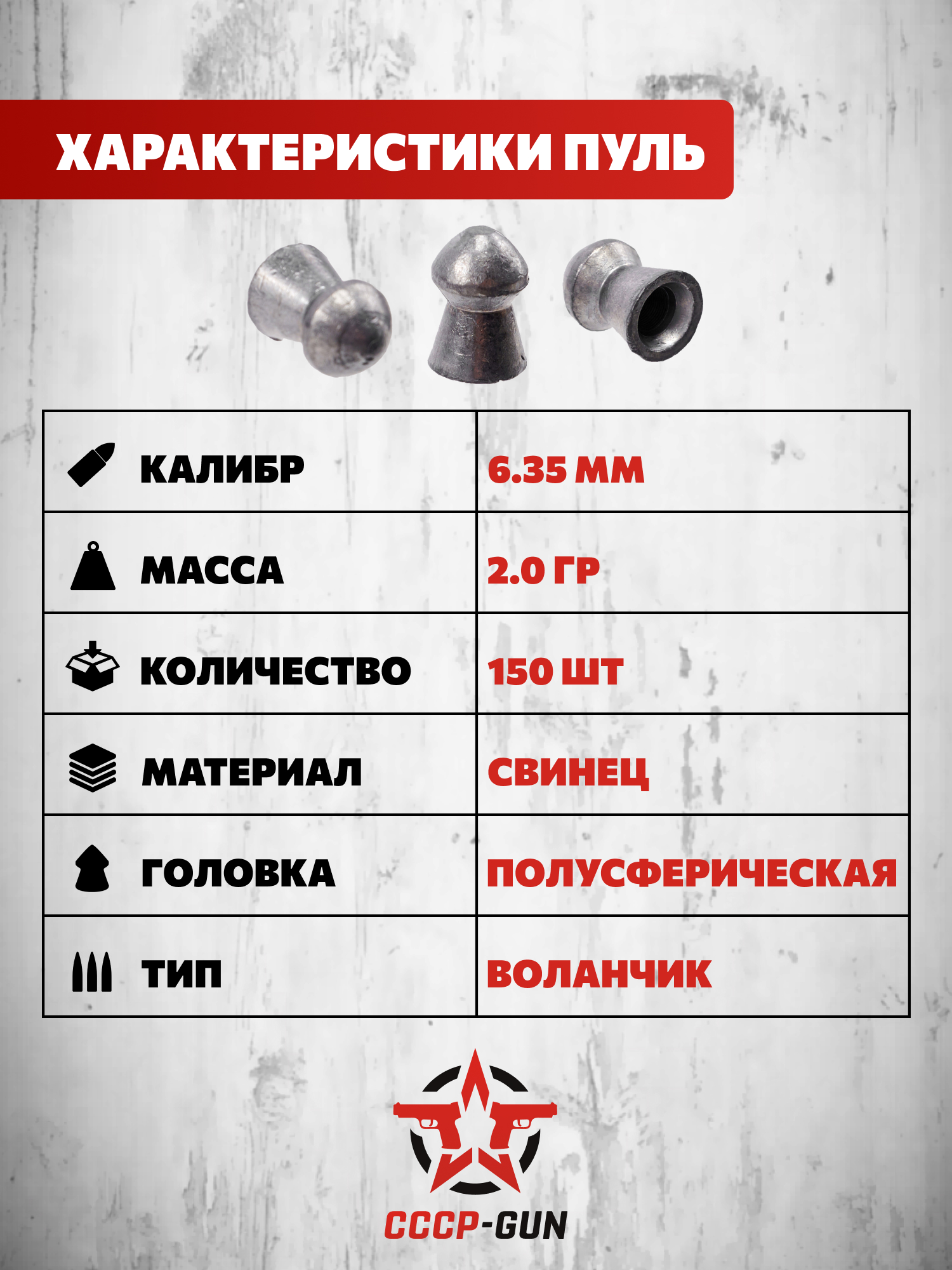 Рассматриваемые пули предназначаются для винтовок с серьезной мощностью пневматического механизма, оборудованных нарезным бланком калибра 6.35 мм, которые используются для стрельбы по мишеням до 100-120 м. Производитель сообщает, что масса одного снаряда приравнивается к 2 граммам, а длина корпуса изделия не превышает 10 миллиметров.