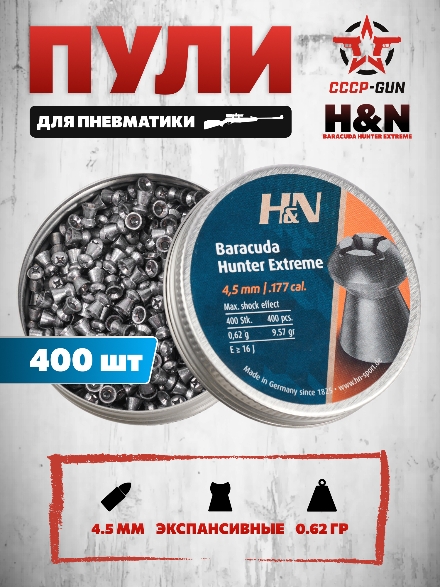 В коллекции указанной фирмы представлены боеприпасы серии Баракуда Хантер Экстрим, спроектированные для совместимости с пистолетами и винтовками, использующими калибр 4.5 мм. Изготовление образцов выполняется на высокотехнологичном оборудовании, которое гарантирует соответствие весовым и геометрическим стандартам в пределах партии. Как указывает производитель, масса отдельного снаряда составляет 0.62 г.