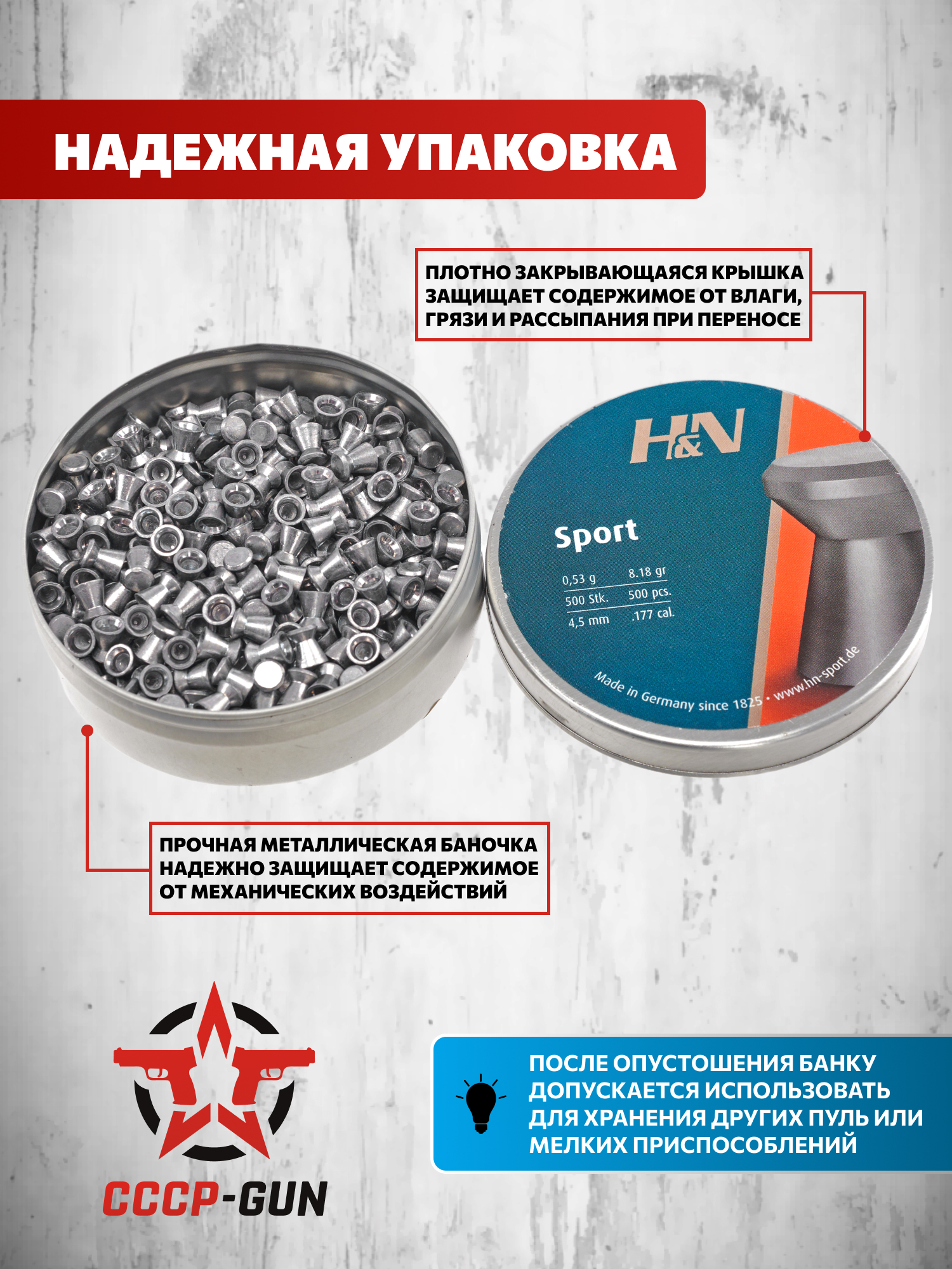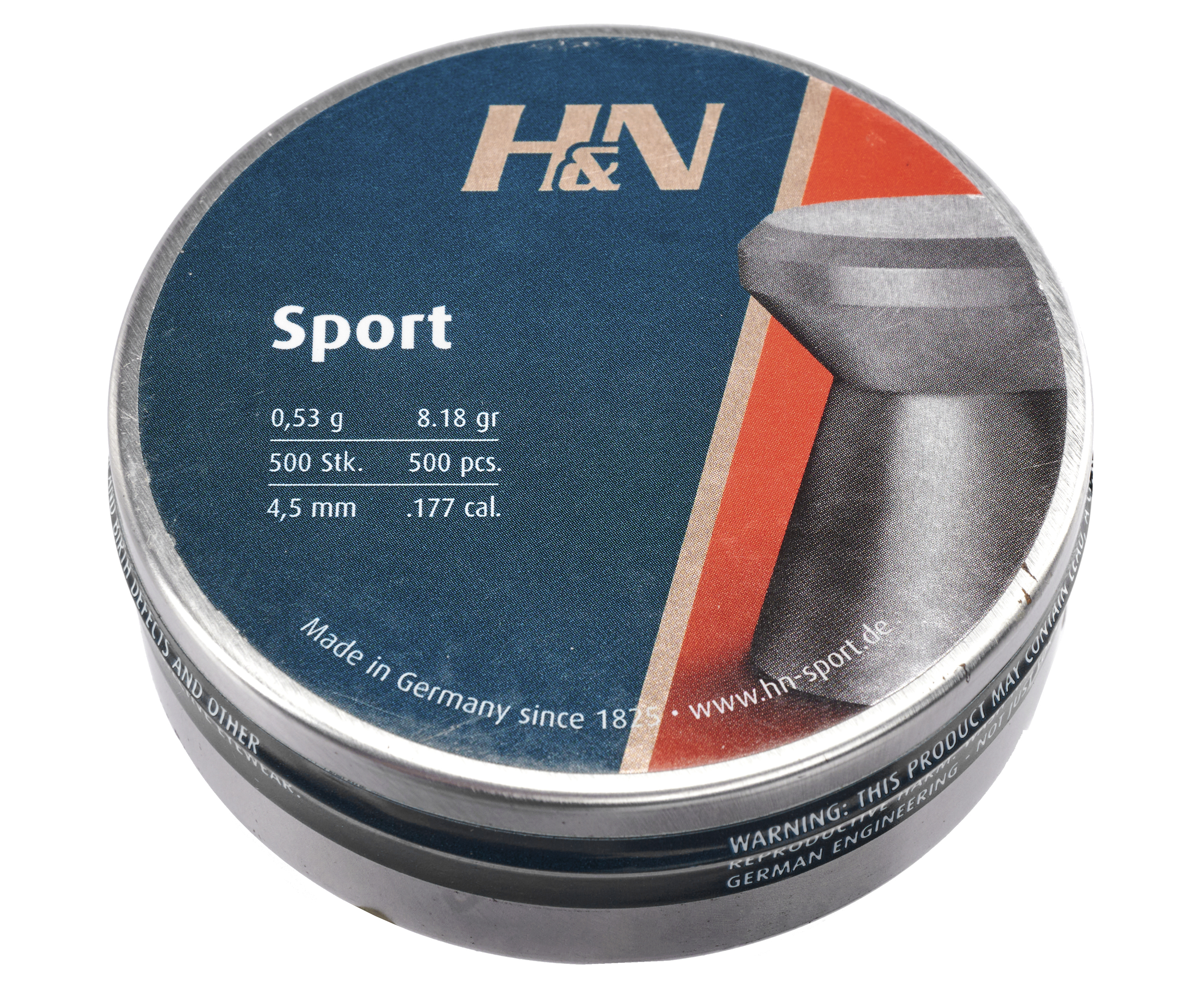Пули H&N Sport поставляются в металлических контейнерах со съемными крышками, предотвращающими случайное рассыпание содержимого - в конкретной партии тара предусматривает 500 штук снарядов. Технология выполнения каждого боеприпаса гарантирует минимальные отклонения в весе и геометрии, гарантируя повторяемость результатов относительно баллистики.