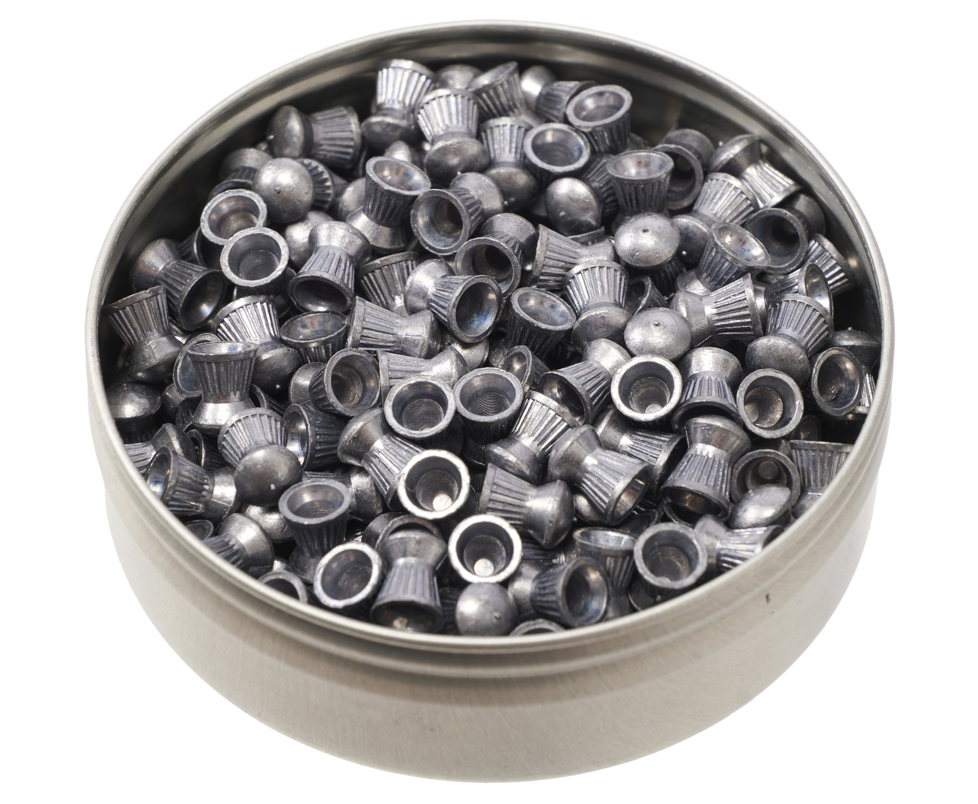 Пули для пневматики 5 5 мм от предприятия H&N упаковываются в металлические банки, каждая из которых содержит 250 единиц свинцовой продукции. Компактные размеры тары с надежной крышкой допускают легкий ее перенос в кармане или сумке, не занимая много места в отсеке.