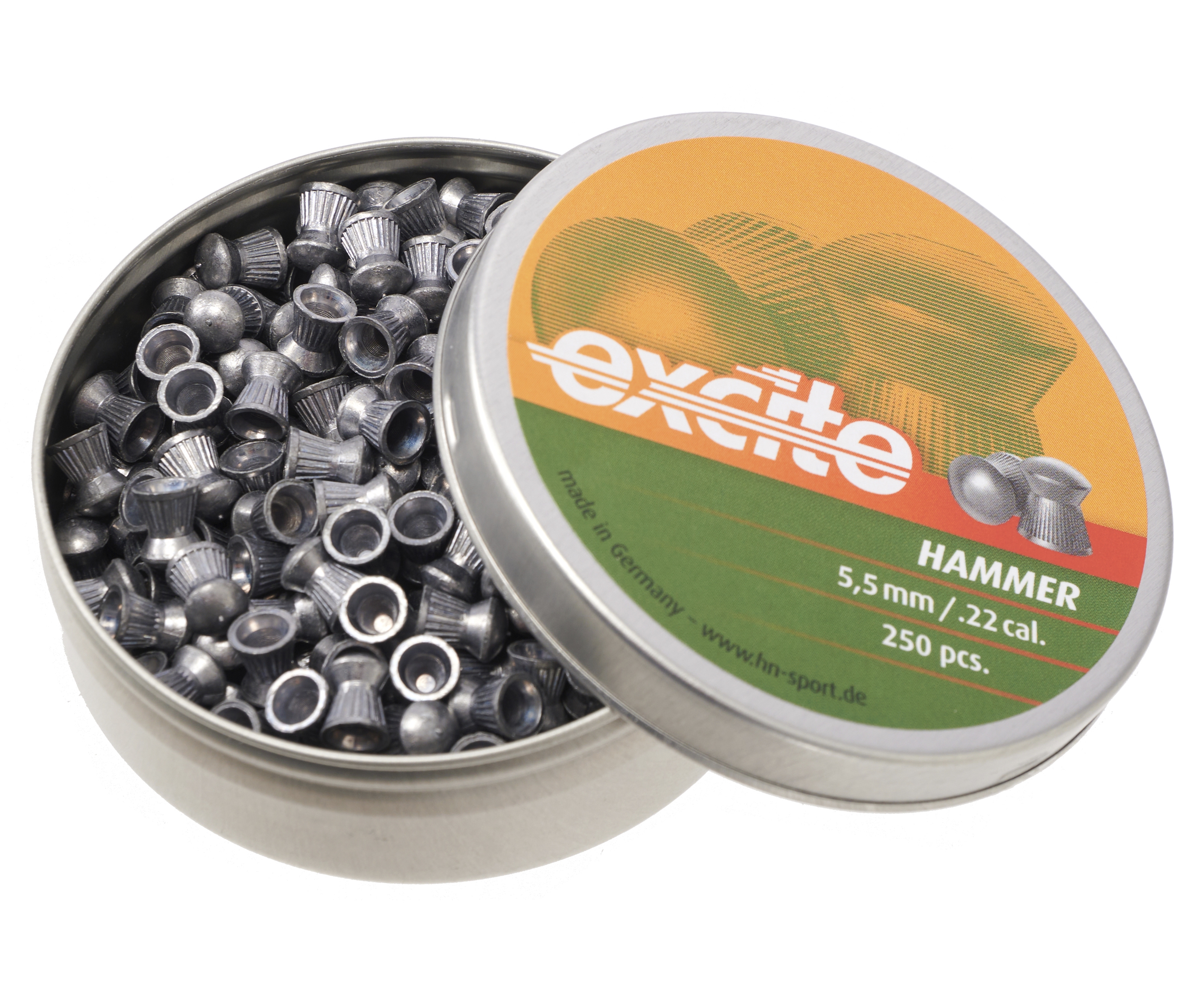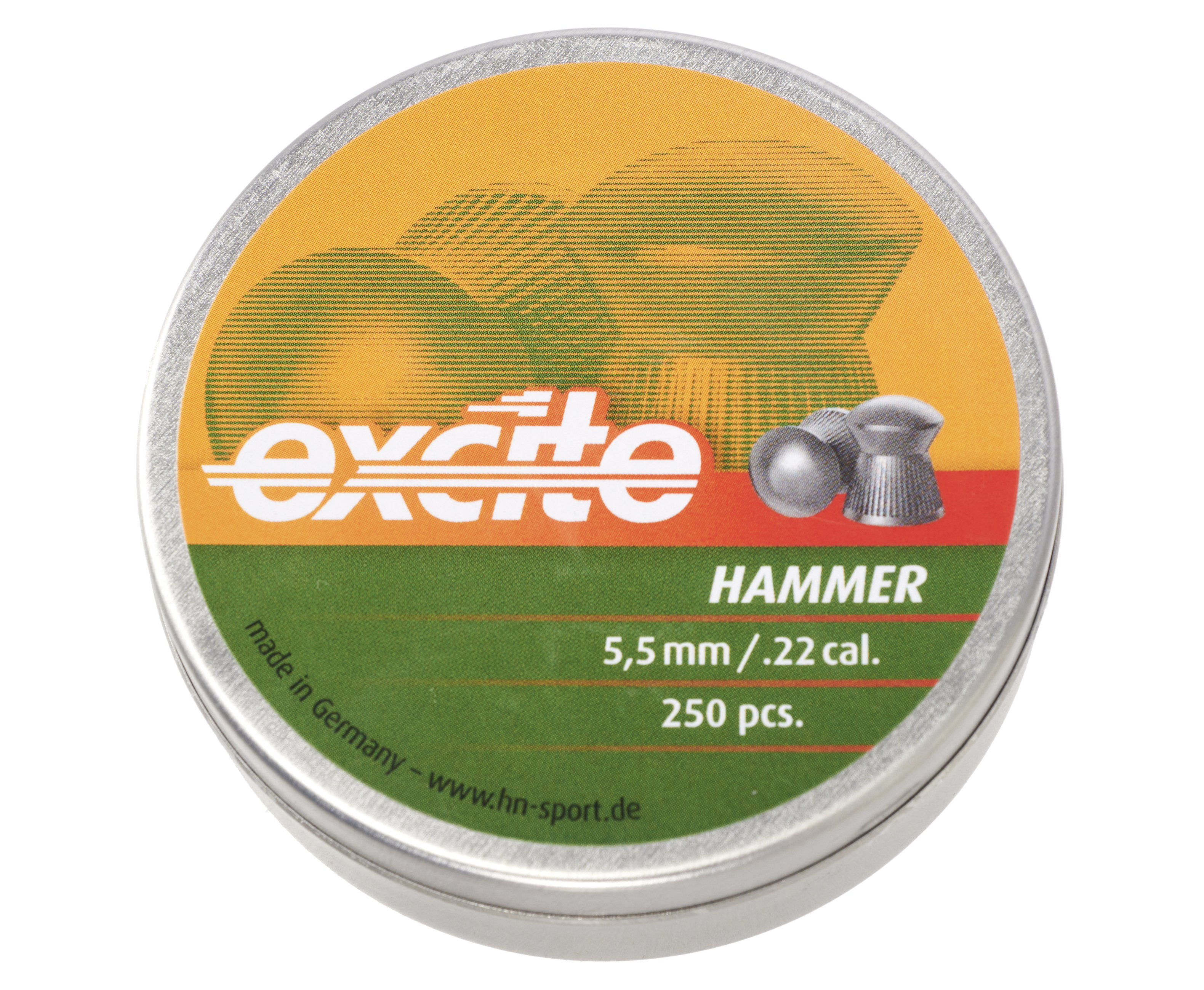 Бренд представил рассматриваемую серию пуль Excite Hammer, совместимых с нарезными моделями винтовок и пистолетов калибра 5.5 мм. Конкретные снаряды относятся к воланчиковому типу, оснащенному расширяющейся юбкой в нижней части - этот элемент требуется для стабилизации траектории движения заряда. Верхний сегмент выполнен в виде полусферы, что снижает сопротивление воздуху и улучшает аэродинамическую эффективность.