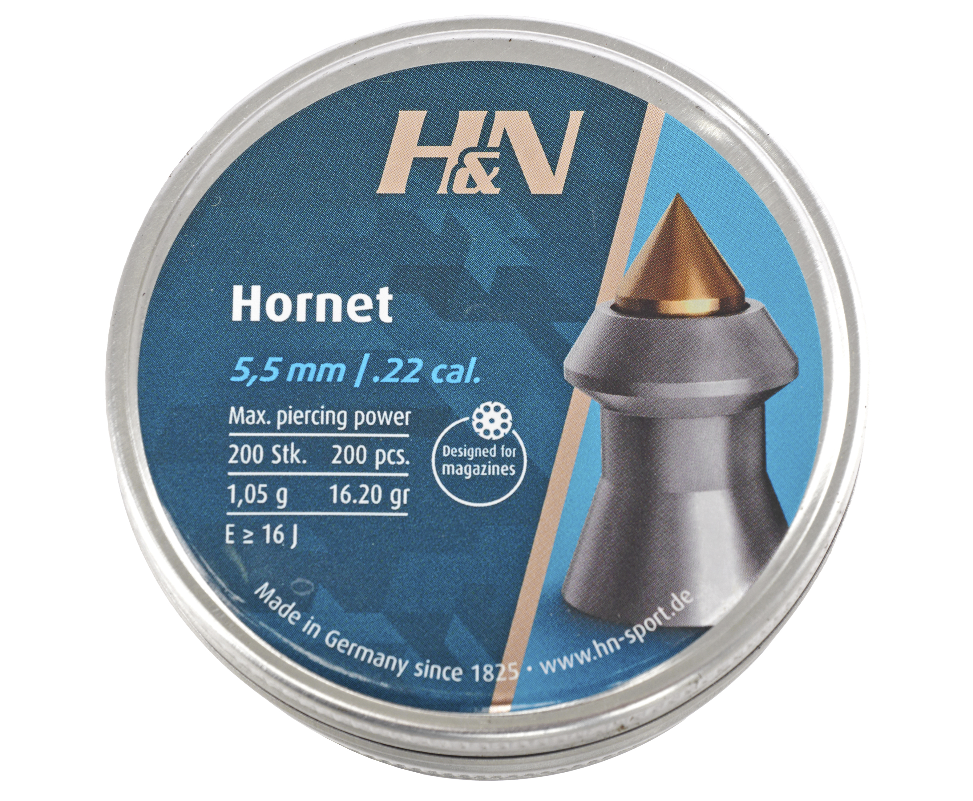 Среди коллекции производителя выделяется серия Hornet - 5.5-миллиметровые боеприпасы с заостренным профилем головки из латуни. Конструкция наконечника оптимизирована для увеличения проникающей силы и улучшения аэродинамических качеств. Последнее гарантируется за счет уменьшения сопротивления при движении после совершения выстрела.
