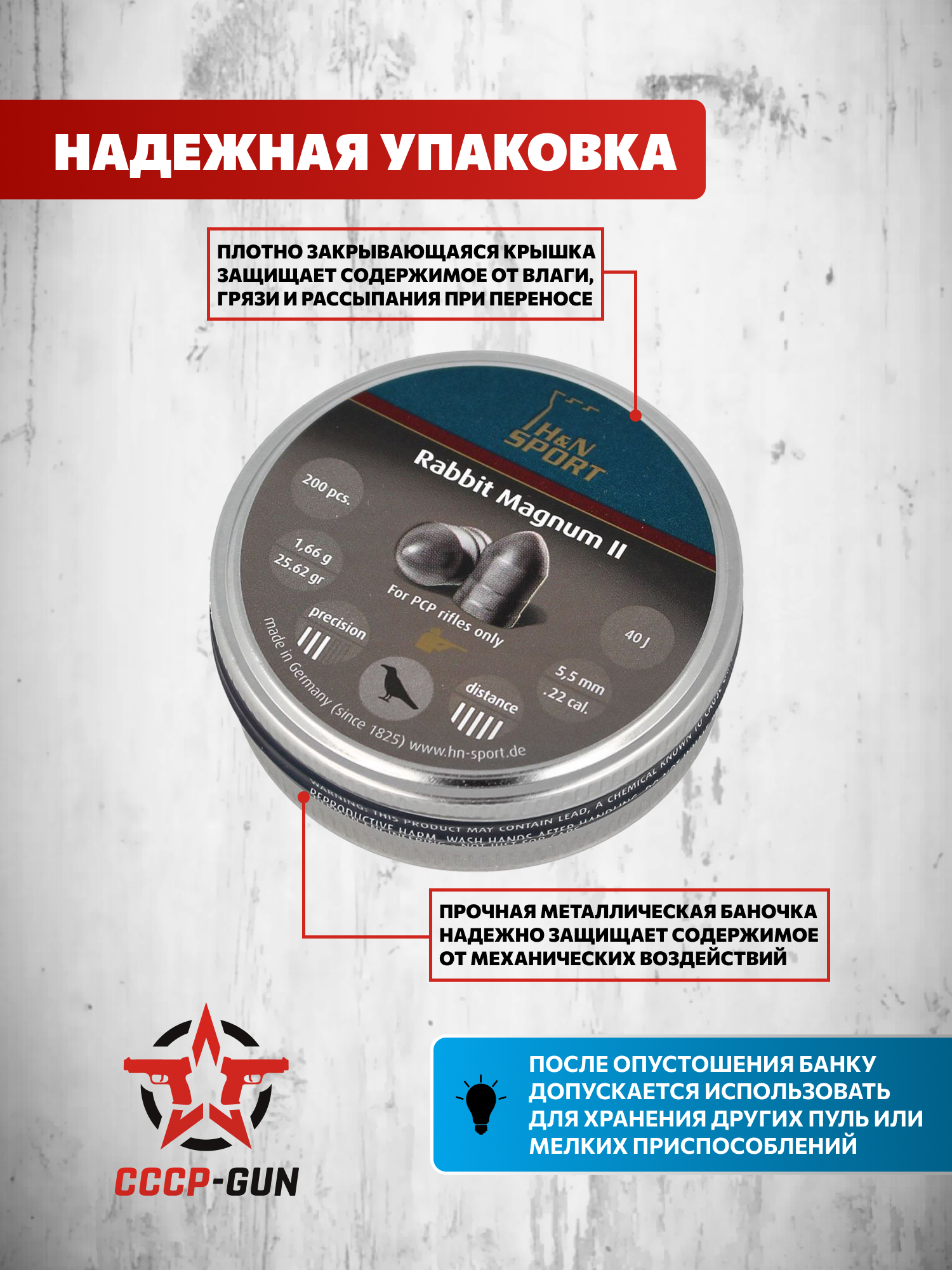 Снаряды предназначены для нарезных стволов калибра 5.5 мм, а материал в виде свинцового сплава обеспечивает прочность и стабильность полета. Он способствует равномерной деформации, сохраняя энергию выстрела.