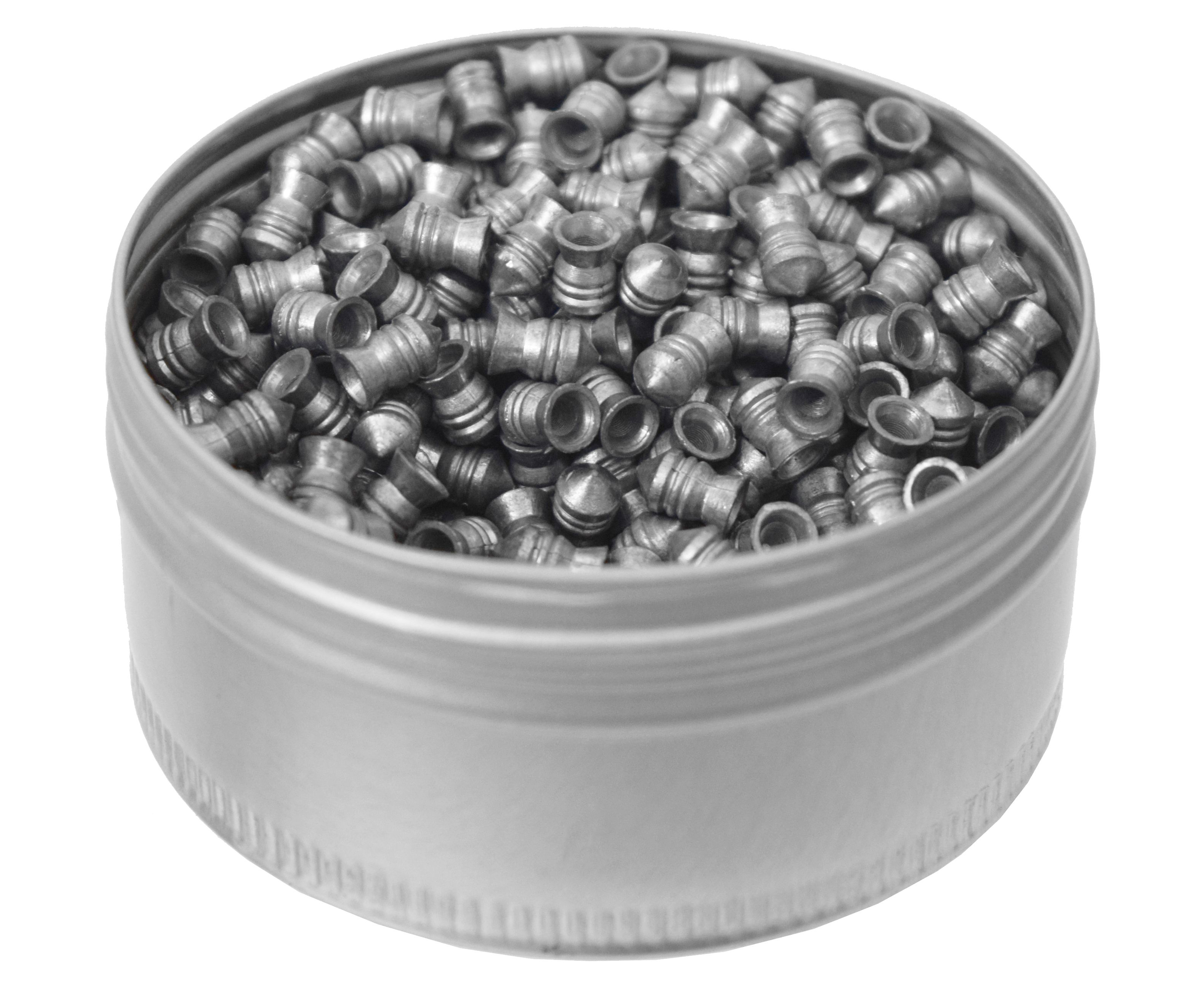 Рассматриваемые острые пули для пневматики укладываются в металлическую банку в количестве 500 штук, чего достаточно для интенсивных тренировок. Малогабаритная конструкция тары обеспечивает удобную транспортировку, не занимая много места. Крышка емкости не даст выпасть переносимым боеприпасам и исключит их загрязнение.