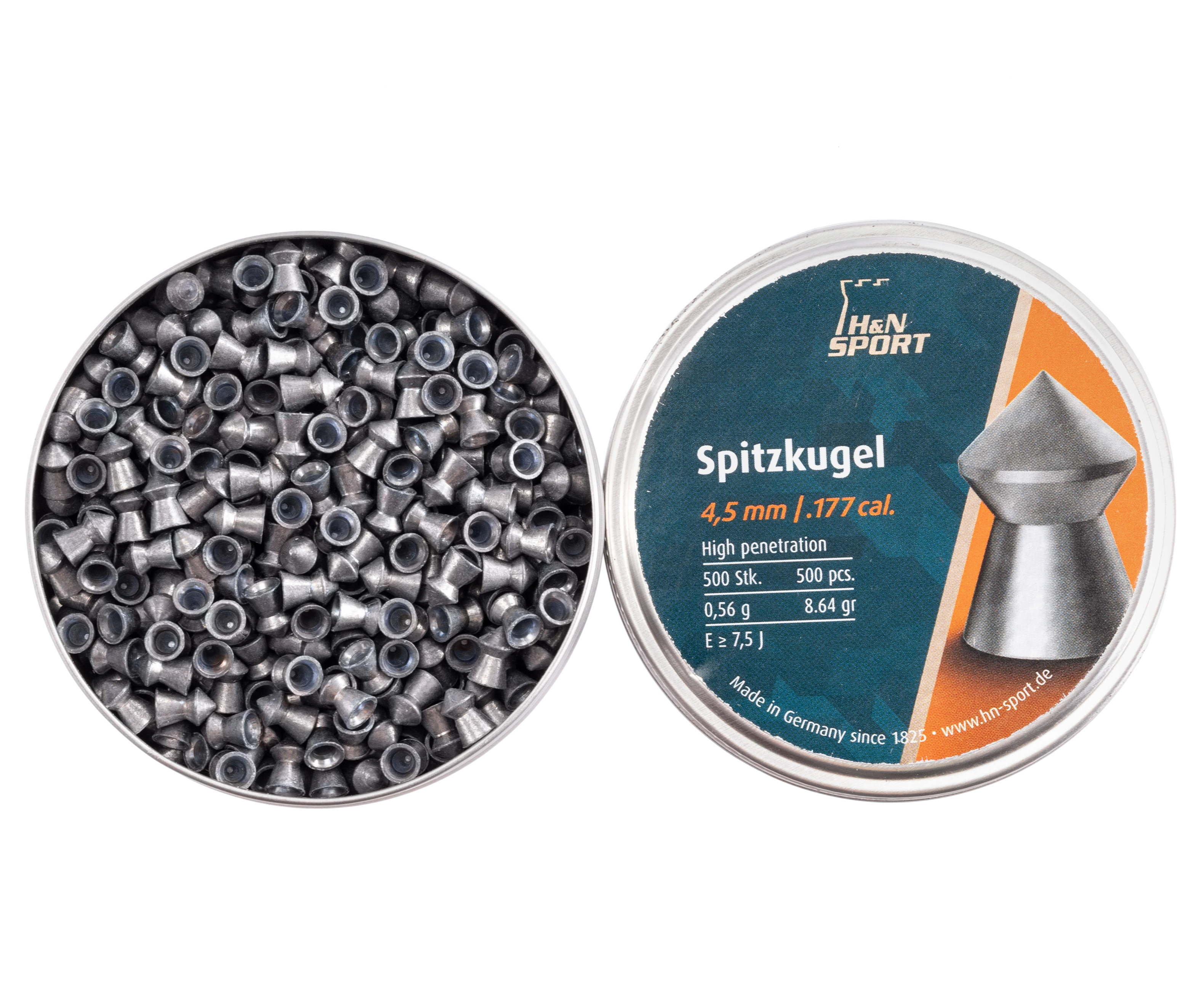Для задач, которые требуют повышенных показателей пробивания, стоит обратить внимание на серию Spitzkugel. Пули от Haendler & Natermann, принадлежащие этой линейке, предусматривают конусовидную форму головки, что ощутимо улучшает их проникающую способность. Конкретные снаряды предназначены для применения с пневматикой под калибр 4.5 миллиметра.