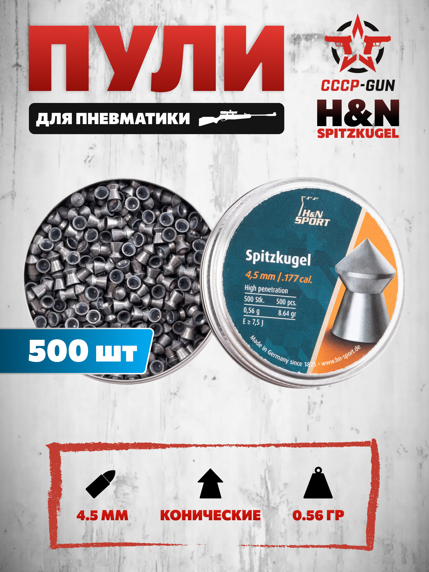 | Комплект поставки | Пули - 500 шт, упаковка |