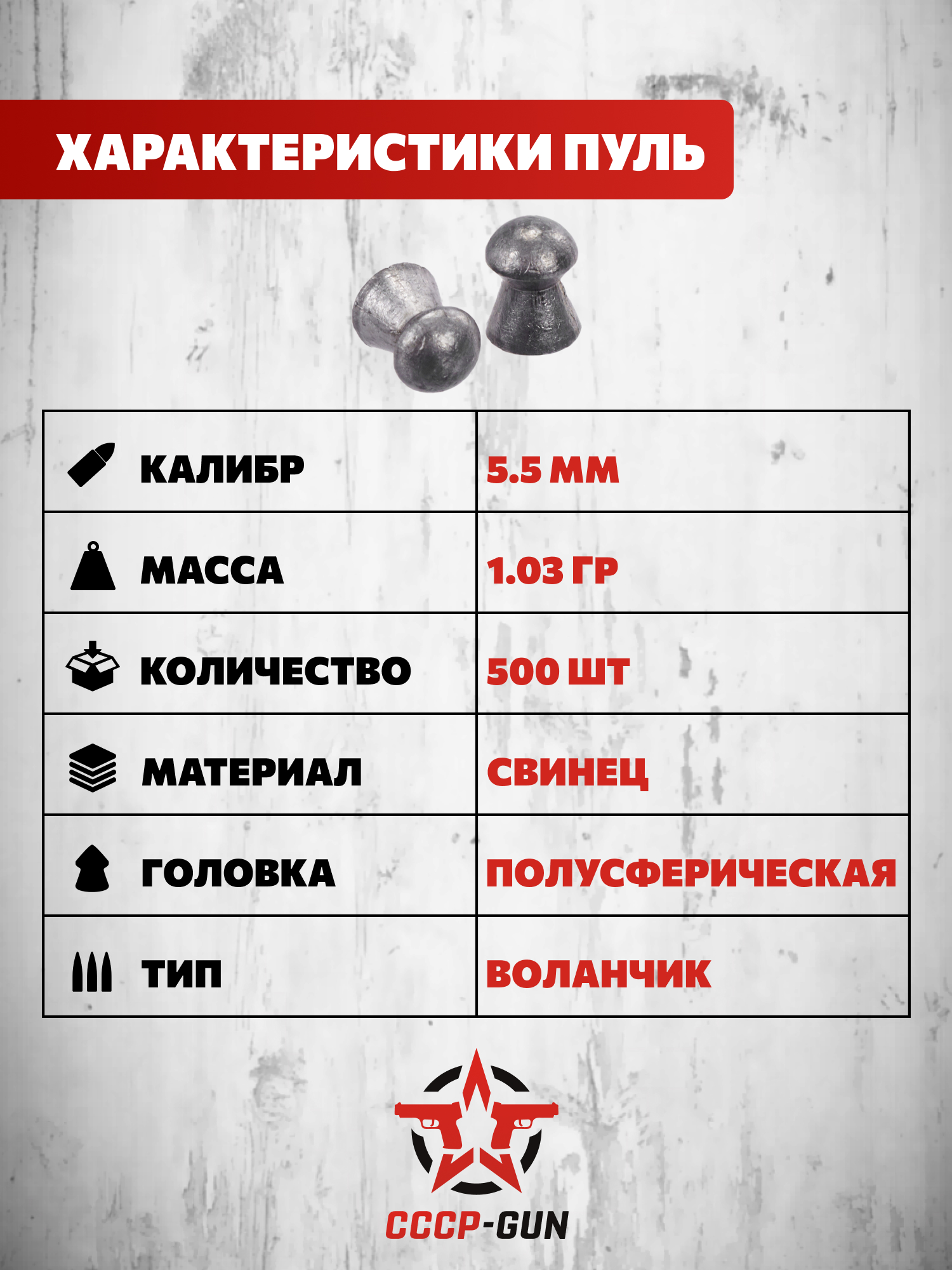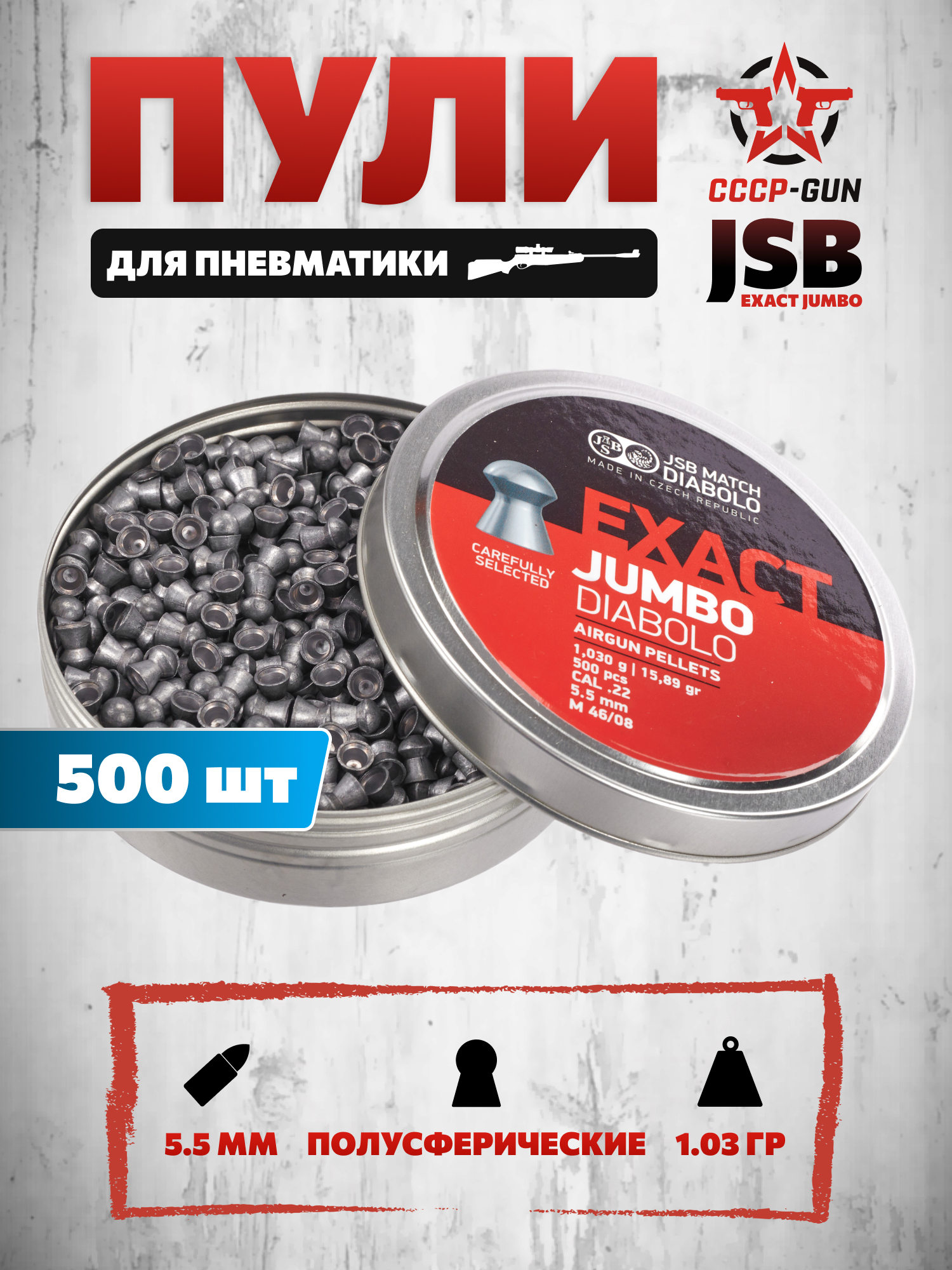 | Комплект поставки | Пули - 500 шт, упаковка |