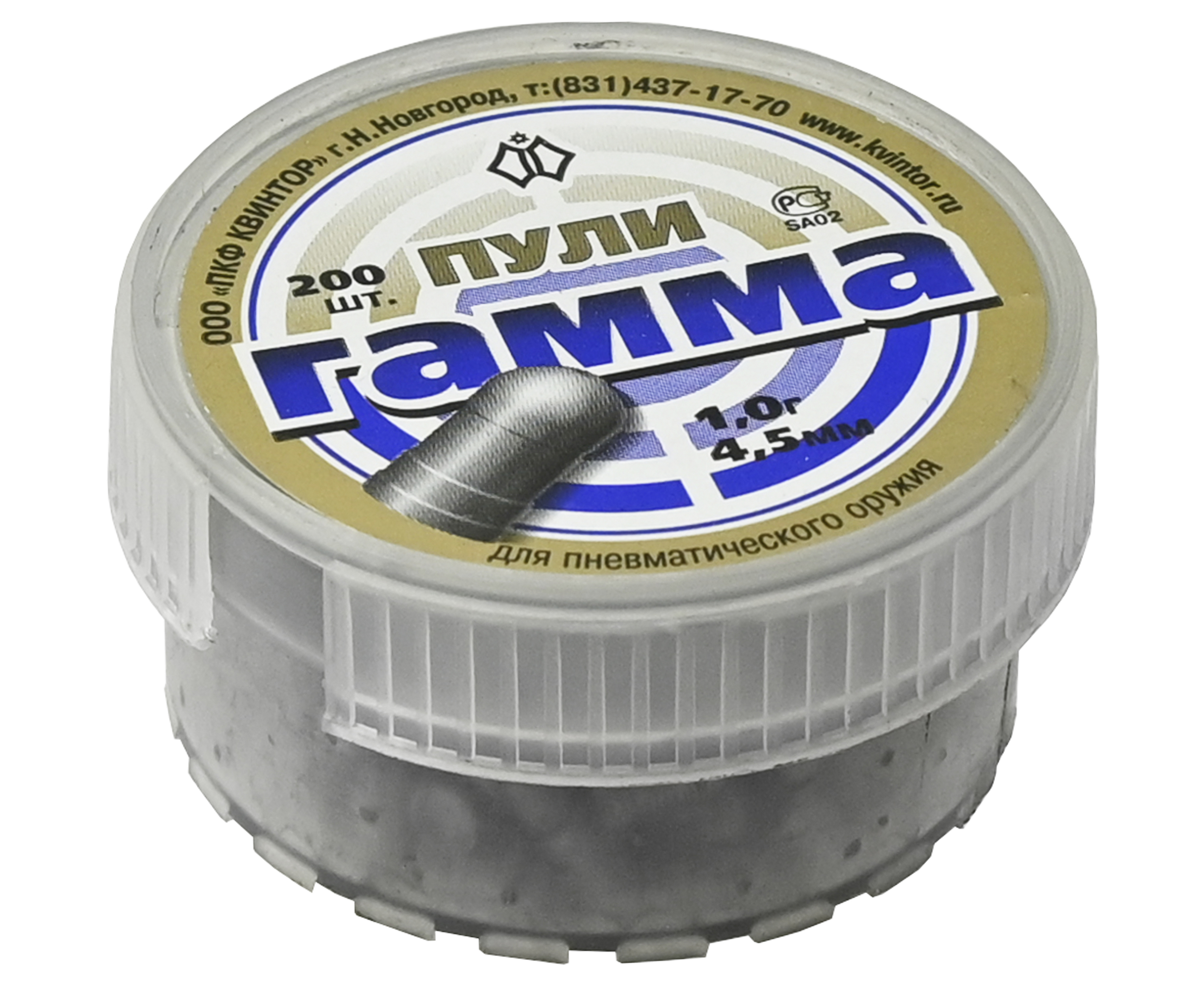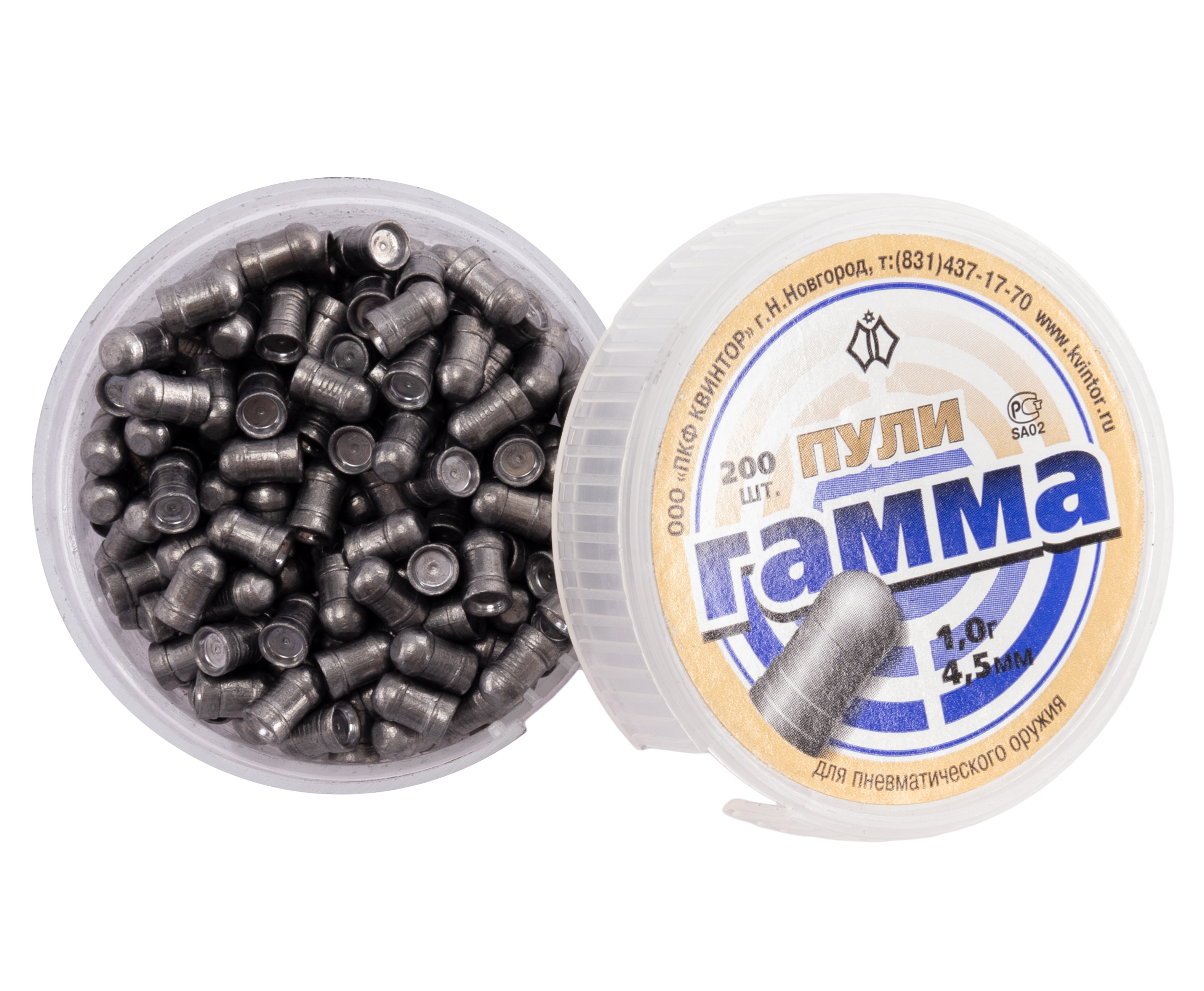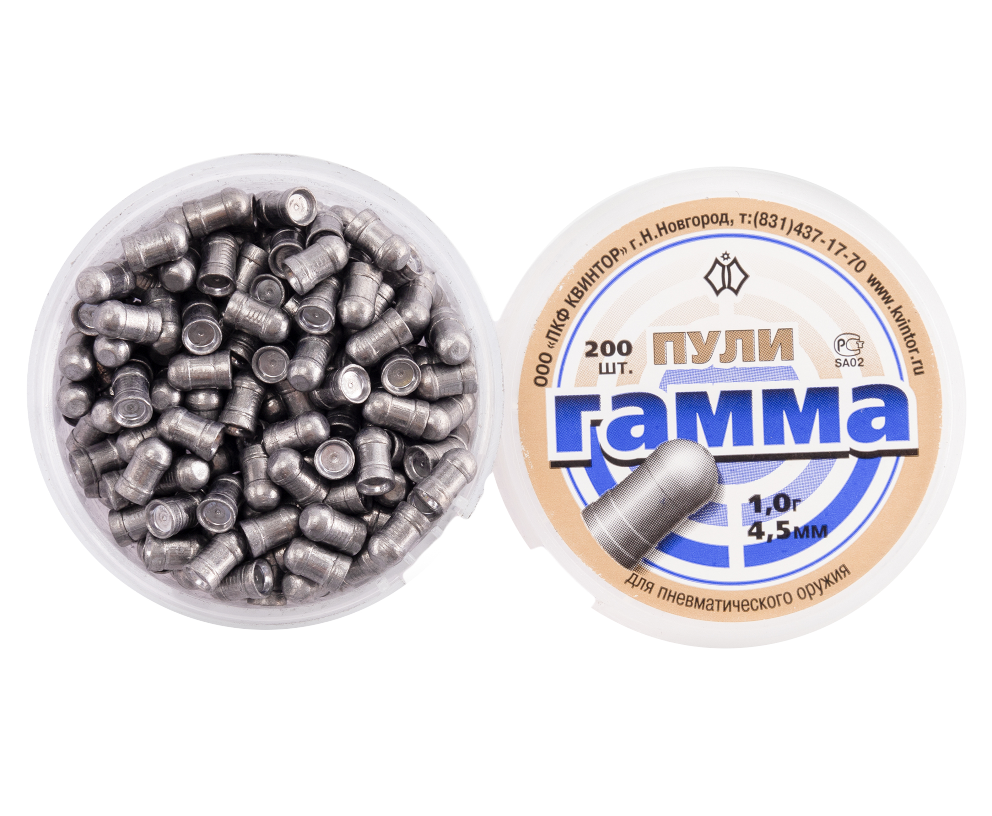 Примером экземпляров от этой фирмы выступают рассматриваемые образцы Гамма калибра 4.5 мм - конструктивной особенностью представленных метательных элементов выступает сферическая геометрия фронтальной зоны, гарантирующая стабилизацию траектории за счет снижения коэффициента лобового сопротивления. Изготовление предполагает использование очищенного свинца, в производственном цикле задействуются современные высокоточные станки.
