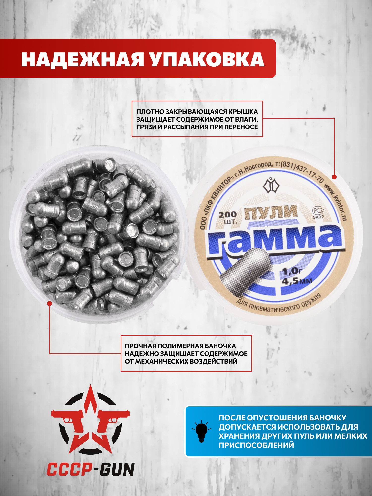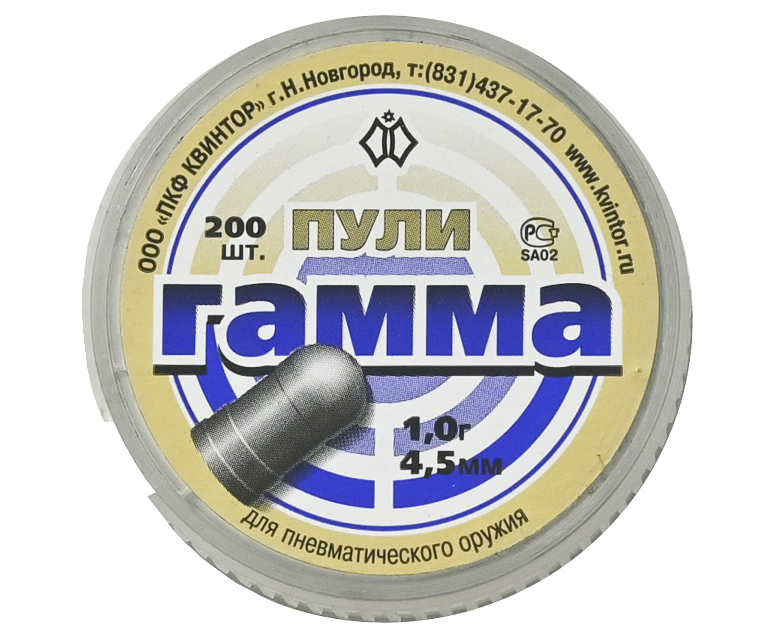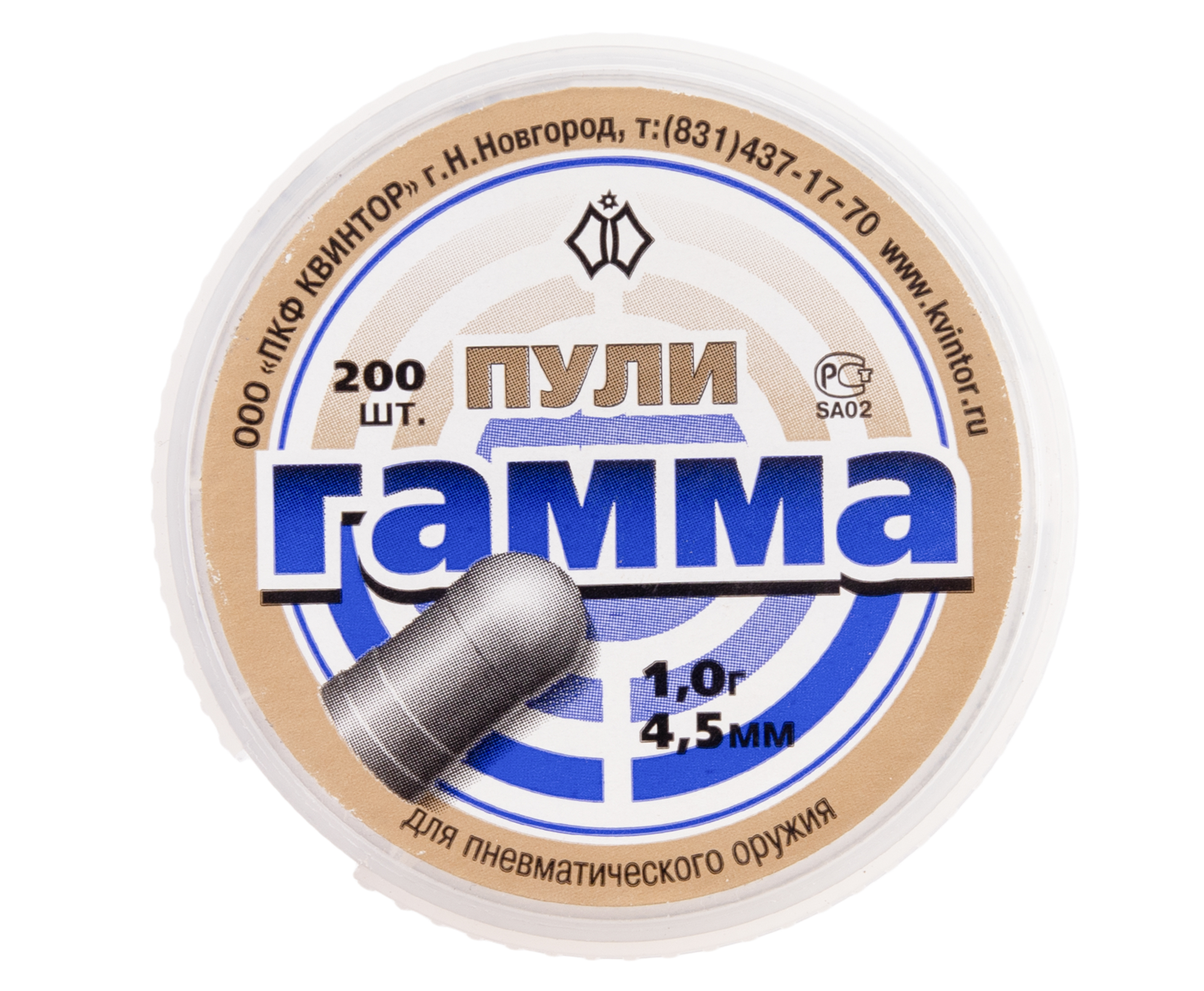 Примером экземпляров от этой фирмы выступают рассматриваемые образцы Гамма калибра 4.5 мм - конструктивной особенностью представленных метательных элементов выступает сферическая геометрия фронтальной зоны, гарантирующая стабилизацию траектории за счет снижения коэффициента лобового сопротивления. Изготовление предполагает использование очищенного свинца, в производственном цикле задействуются современные высокоточные станки.