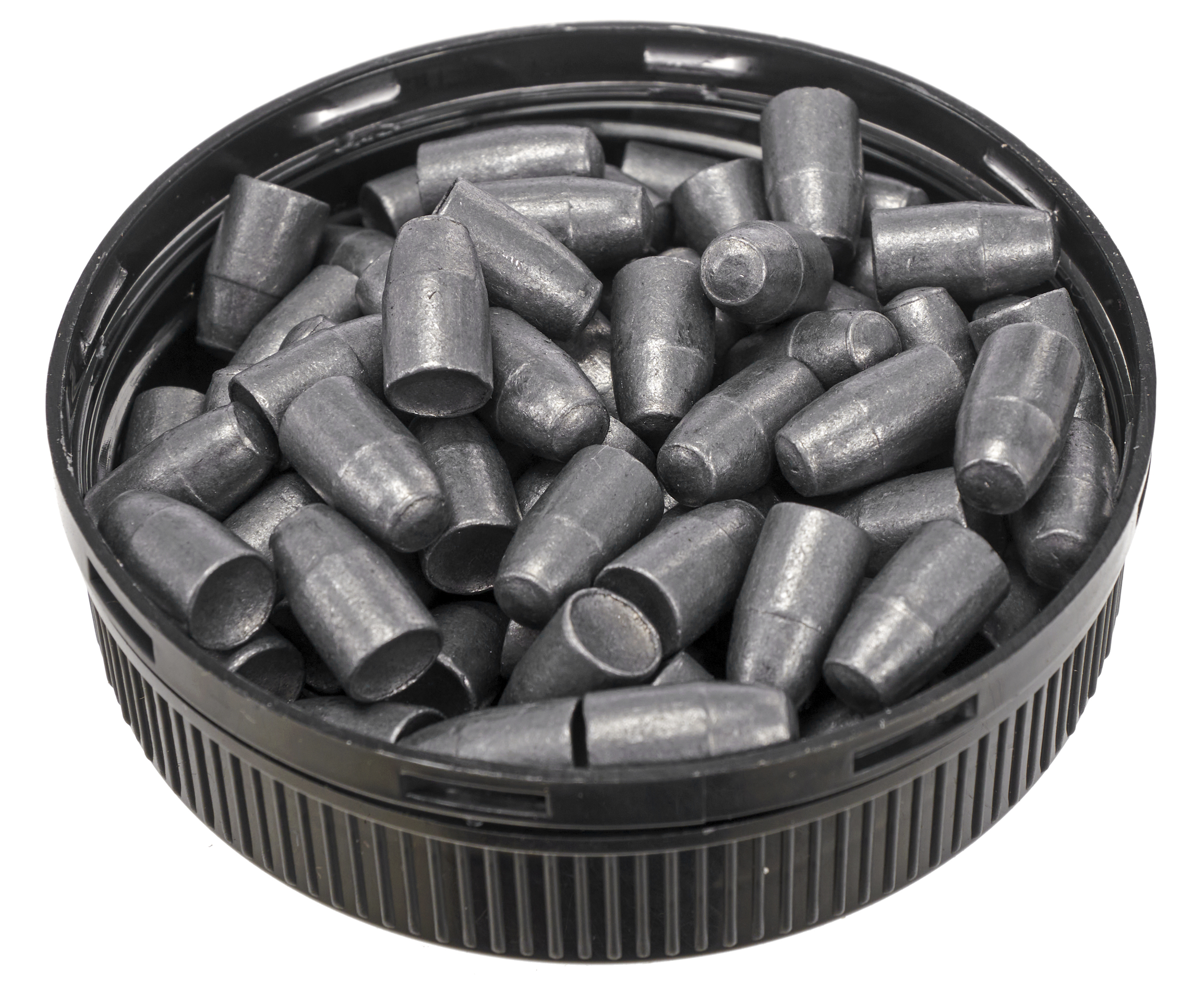 Контейнер обеспечивает защиту от внешних воздействий, удобство хранения и комфортное обращение к содержимому при стрелковой сессии - тару допускается положить на ровную поверхность для регулярного взятия зарядов. Изготовитель уложил в банку 200 штук пуль.