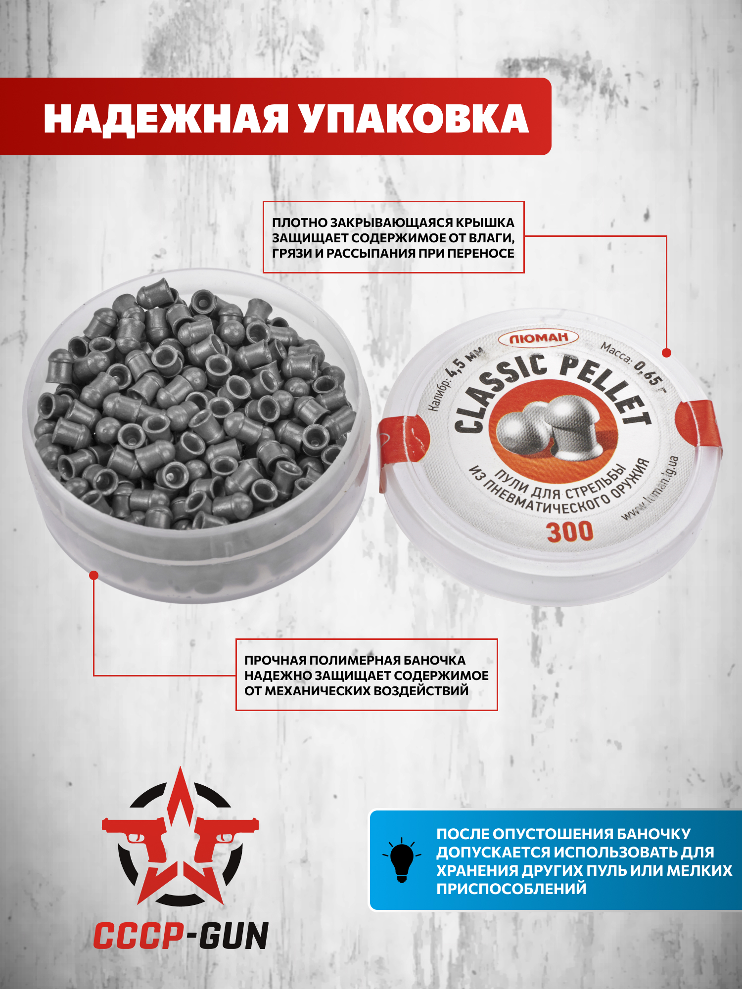 Поставляются пули Люман Classic Pellets в пластиковой упаковке по 300 штук. Такой объем подходит для частых тренировок или выездных сессий, когда требуется достаточный запас боеприпасов в компактной таре.