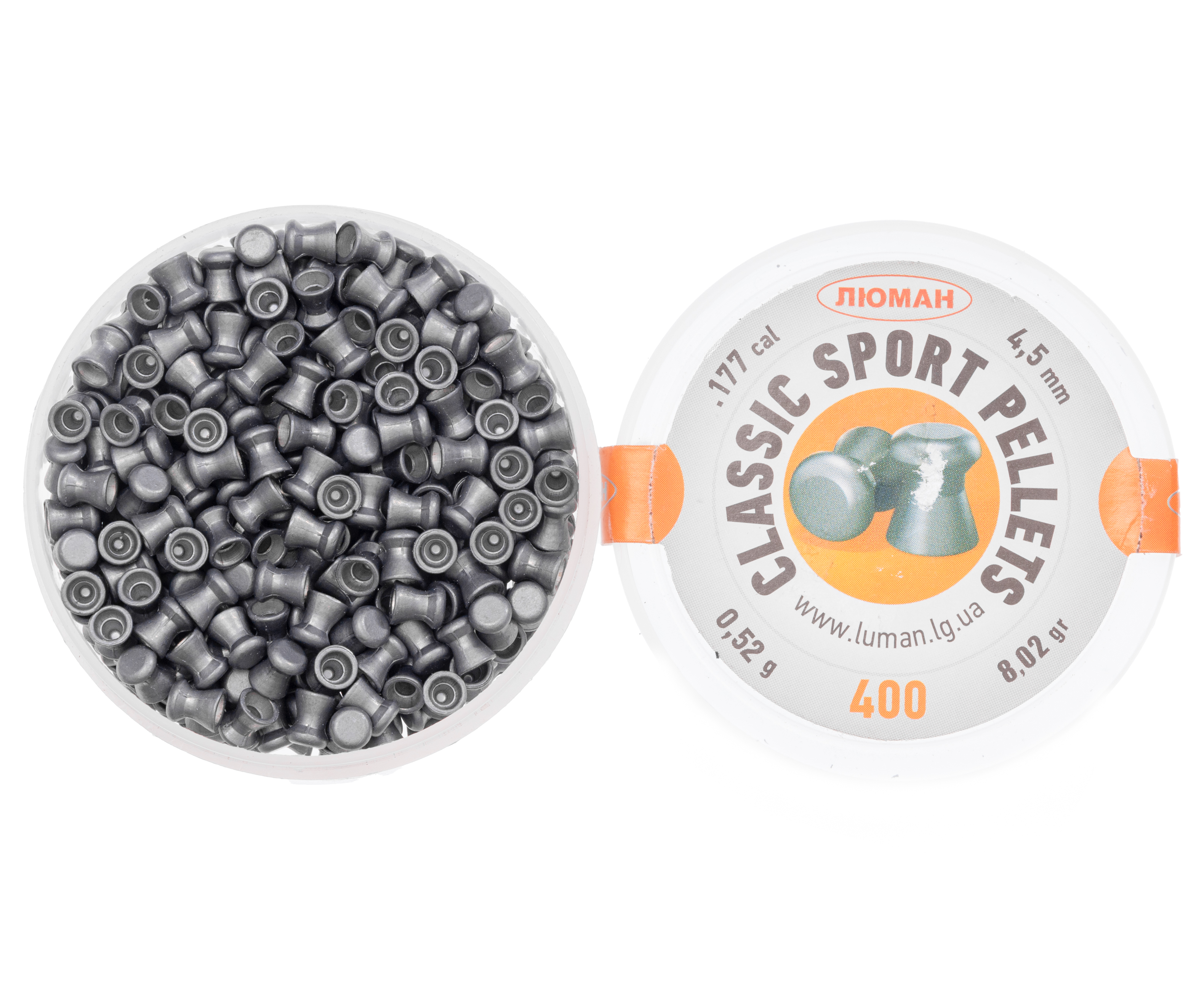 Представленная партия Classic Sport Pellets создана для применения в пневматических устройствах с нарезным стволом под калибр 4.5 мм. Конструкция боеприпасов напоминает схему волана - в нижней части присутствует своеобразная юбка, необходимая для устойчивости траектории во время полета. Центральная секция содержит полое пространство, итоговая масса одного изделия на выходе составила 0.52 грамма - указанный параметр требует обязательного учета при сопоставлении с энергетическими параметрами используемой винтовки или пистолета.
