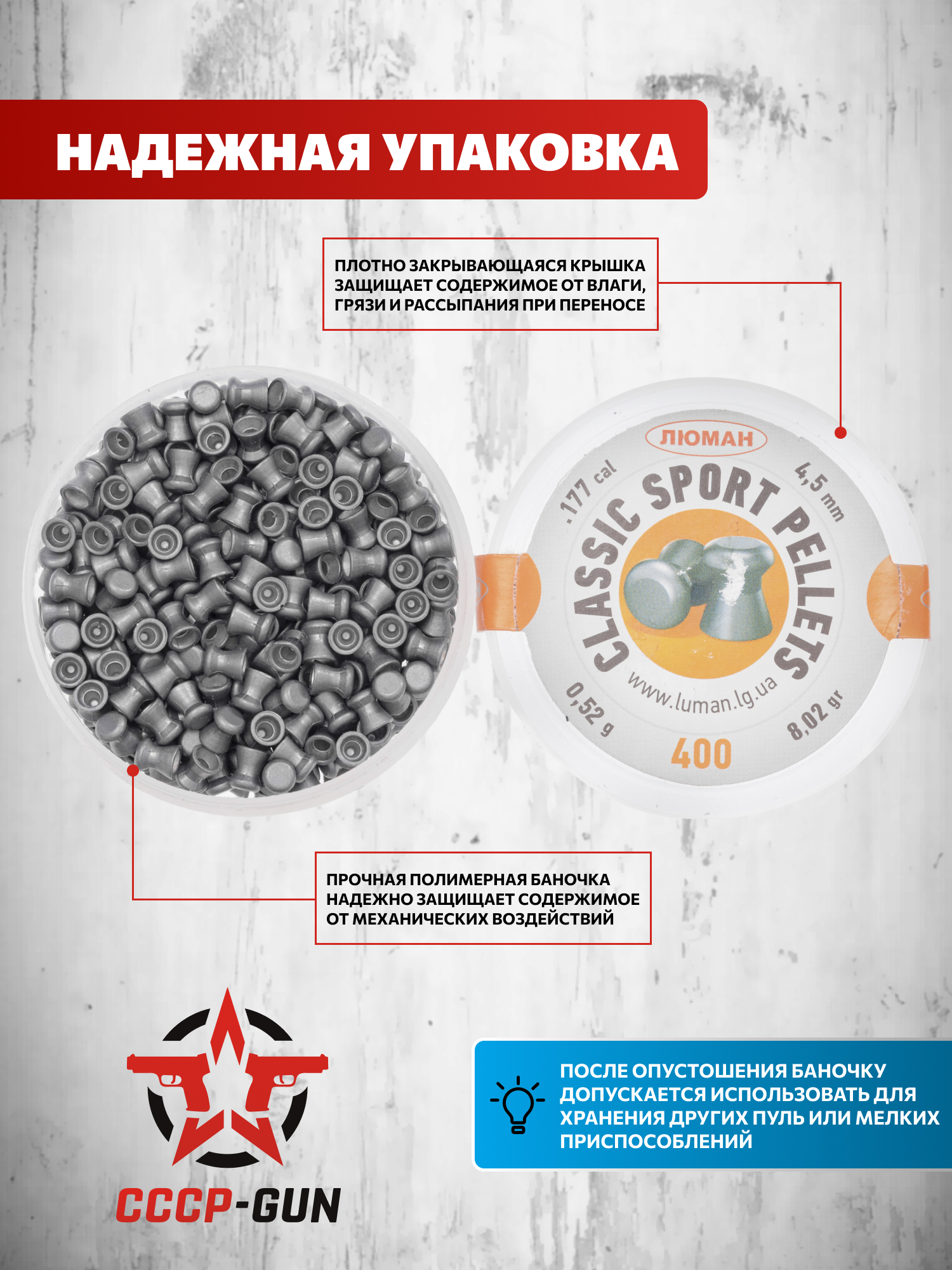 Рассматриваемые пули Люман 4 5 уложили в баночку с крышкой, которая предотвращает утерю содержимого во время транспортировки - в поставку в конкретном случае включено 400 боеприпасов. Ударопрочные свойства упаковки гарантируют сохранность содержимого при транспортировке, а компактные габариты позволяют размещать тару даже в карманах куртки или брюк.