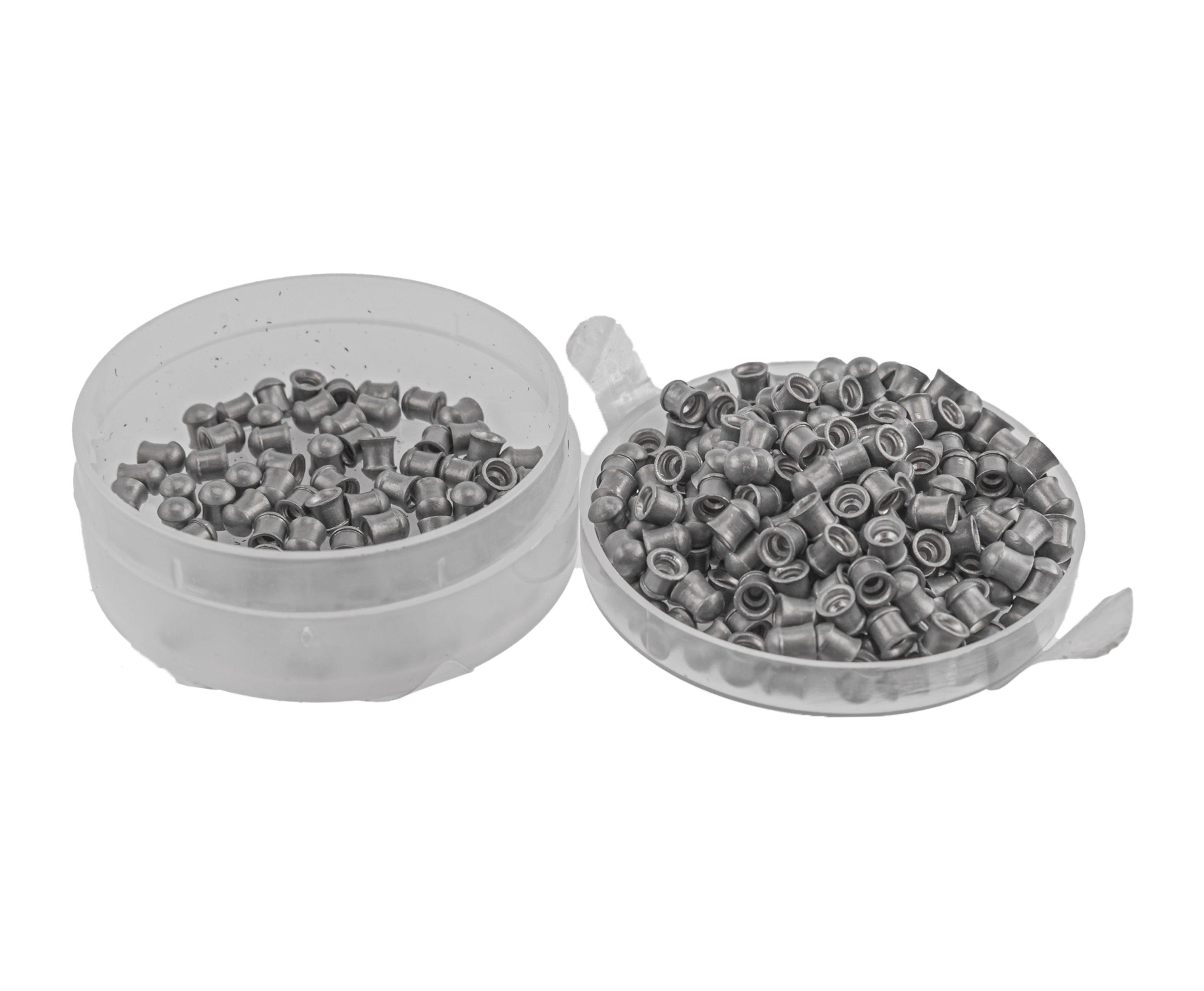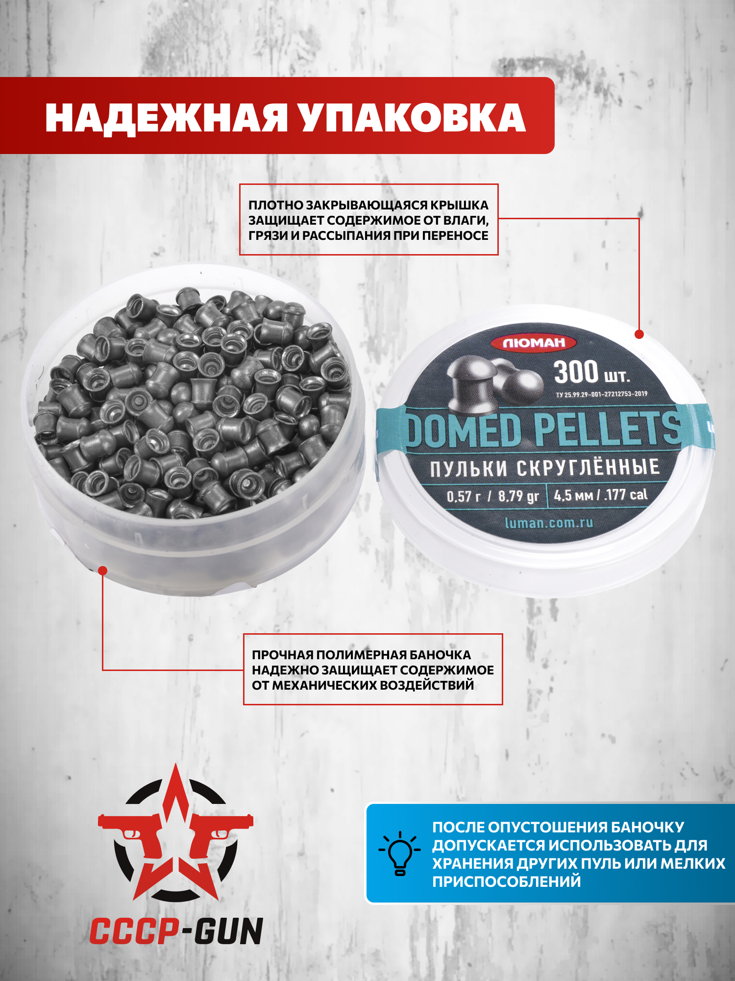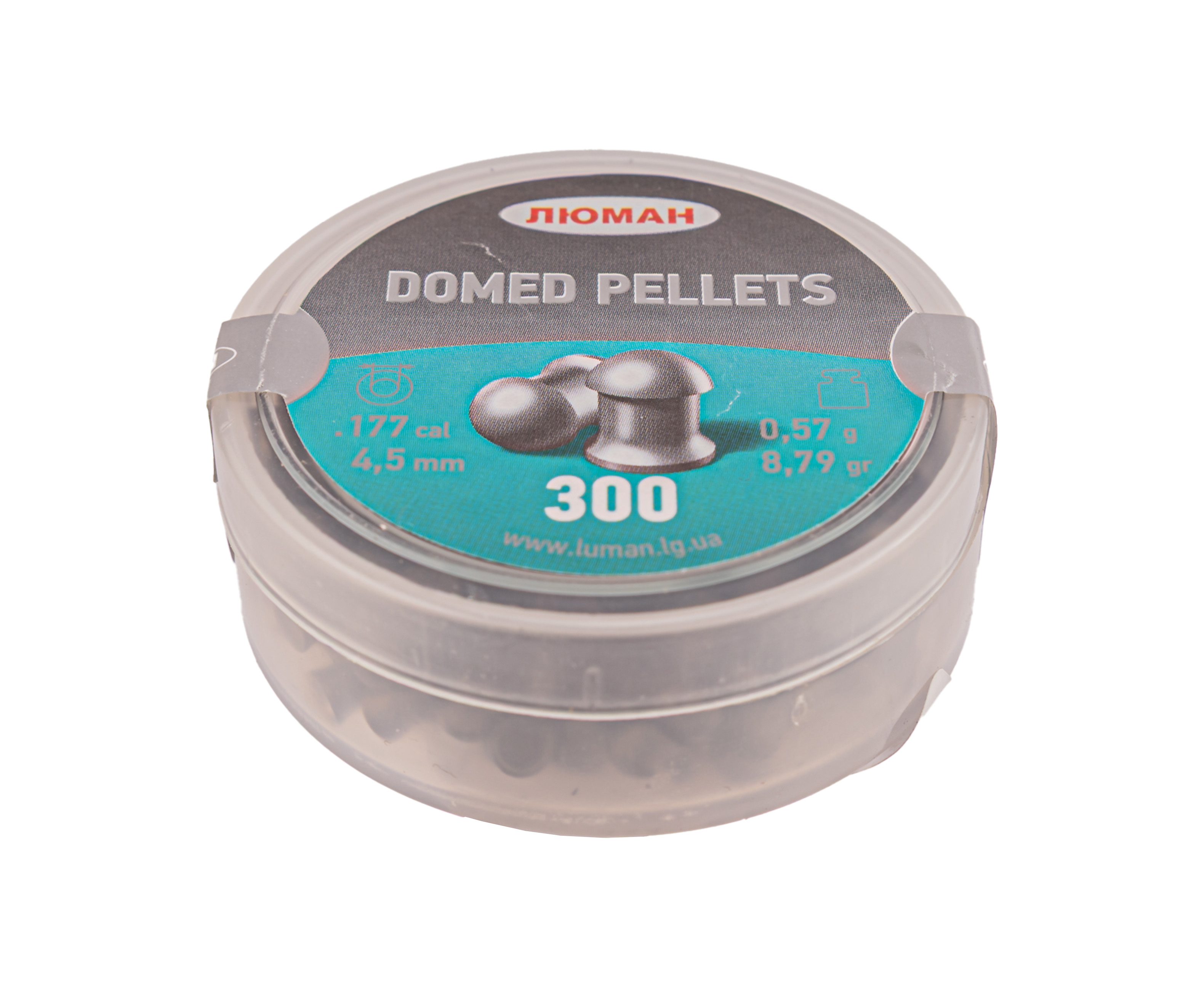 Обозреваемые пули Domed Pellets Люман поступают в продажу в небольших баночках - каждая такая тара вмещает 300 единиц готовых к применению метательных элементов. Конструкция емкости включает в себя плотно закрывающуюся крышку, что гарантирует надежную изоляцию содержимого от проникновения влаги, частиц пыли и прочих внешних загрязнителей.