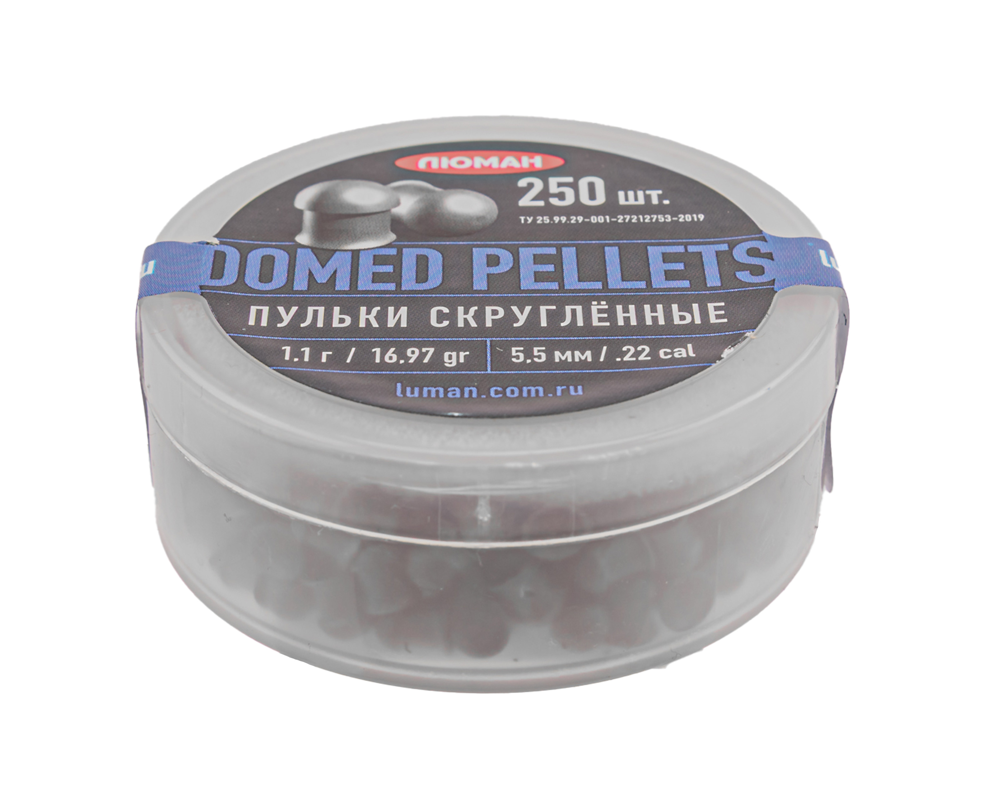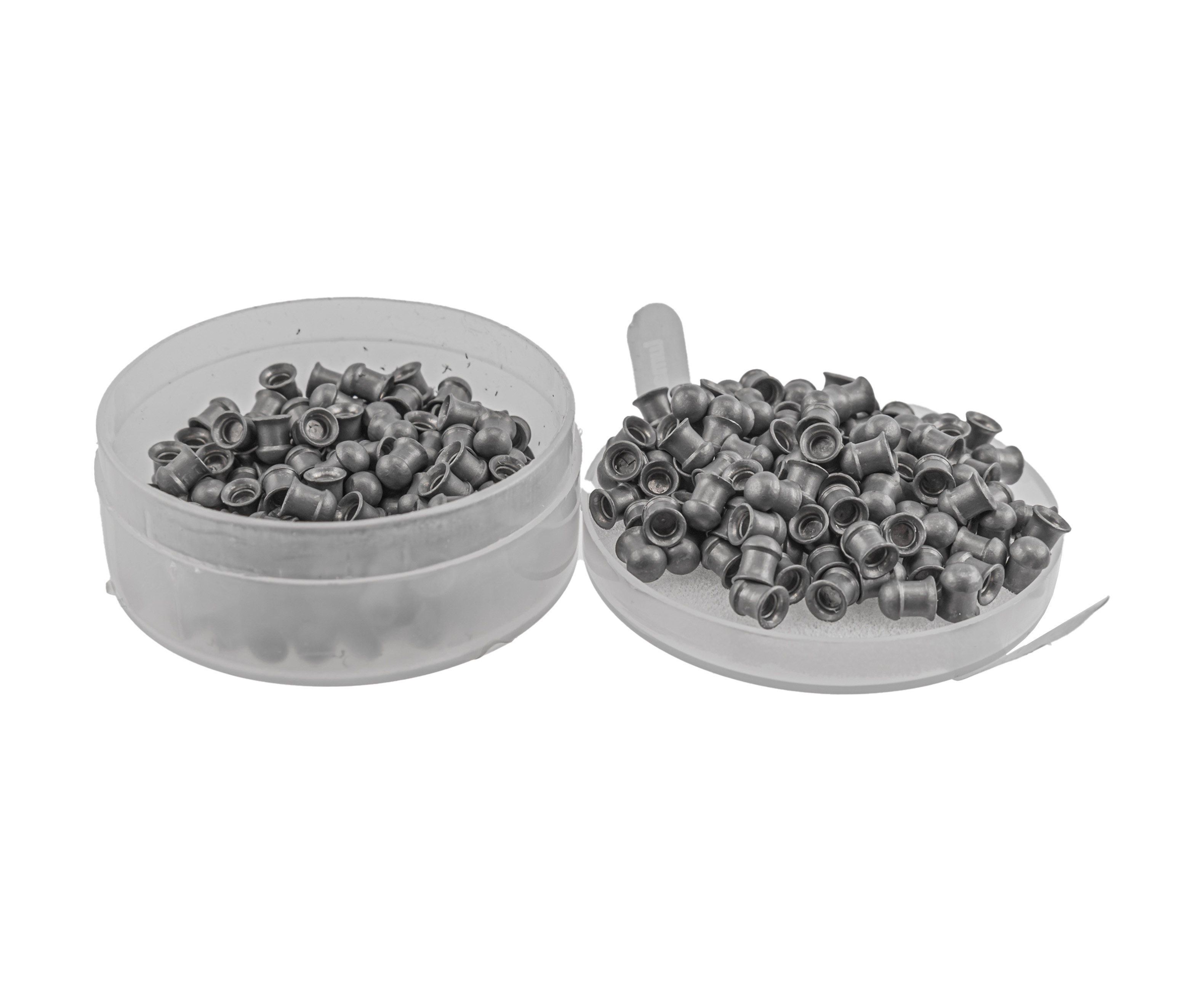 Представленные пули Люман 5 5 мм поставляются в компактных контейнерах, которые содержат 250 снарядов. Банка предусматривает крышку, гарантирующую изоляцию содержимого от проникновения влаги, пыли и других загрязнителей на протяжении всего периода хранения.