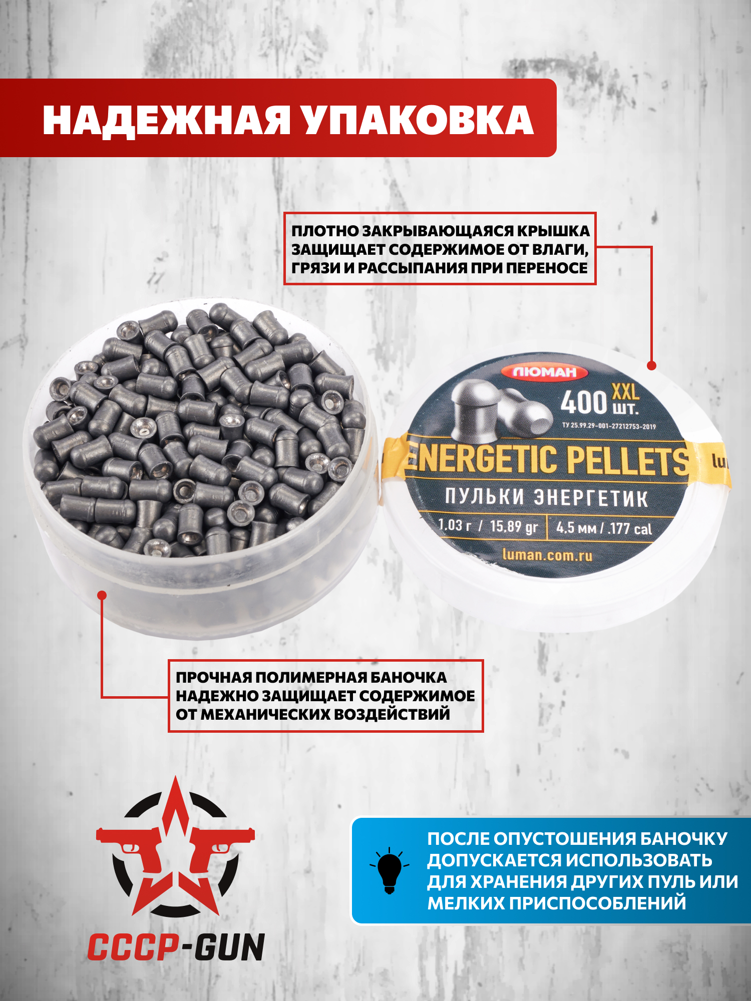 Производитель Luman последовательно увеличивает ассортимент боеприпасов для пневматических винтовок и пистолетов. Предприятие представило рассматриваемые пули Energetic Pellets, предназначенные для эксплуатации совместно с пневматикой, оборудованной нарезным стволом с внутренним диаметром 4.5 миллиметра. Передняя часть образцов выполнена в виде полусферы, что гарантирует оптимизацию обтекаемости воздуха при движении.