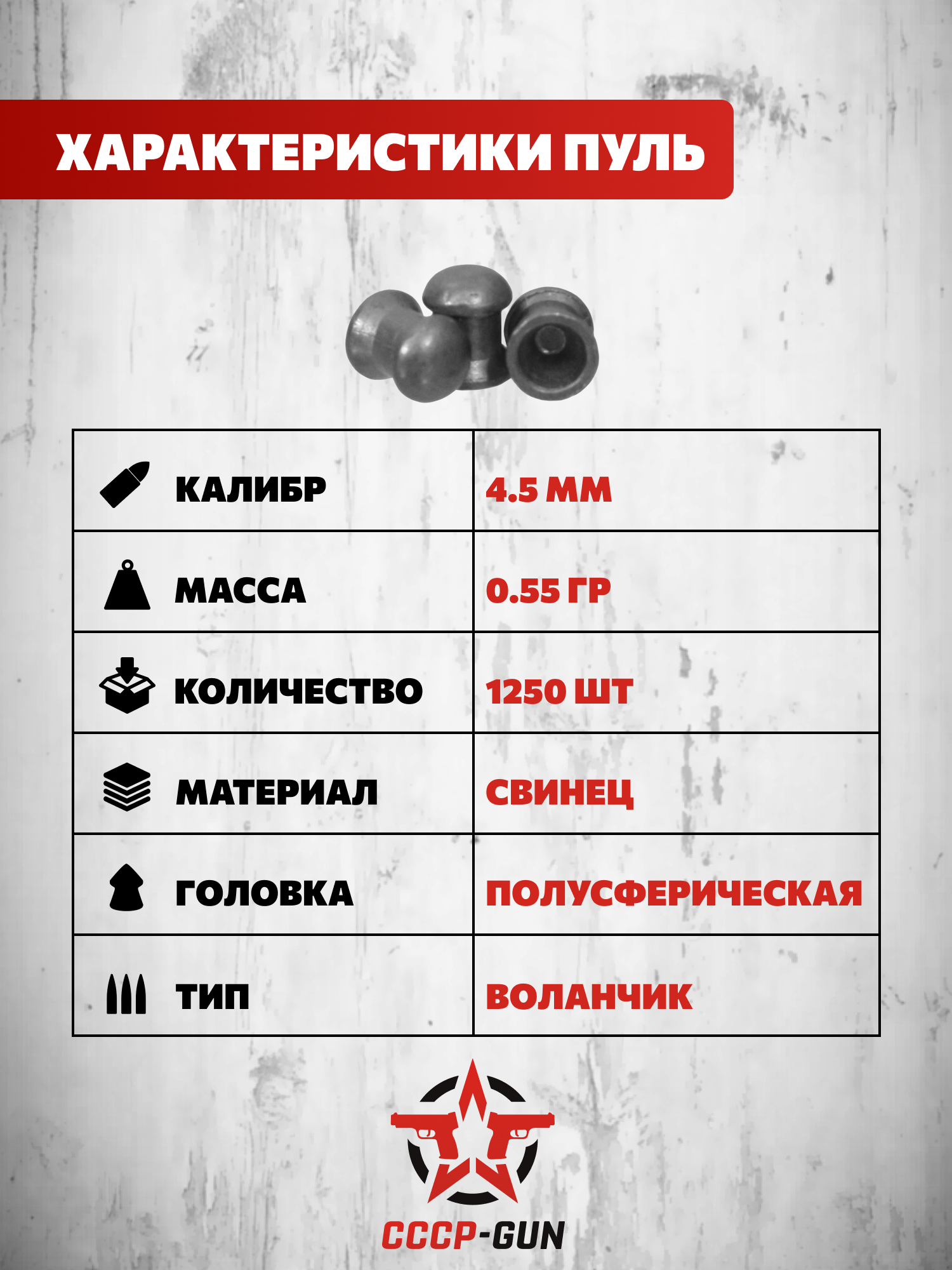 | Комплект поставки | Пули - 1250 шт, упаковка |