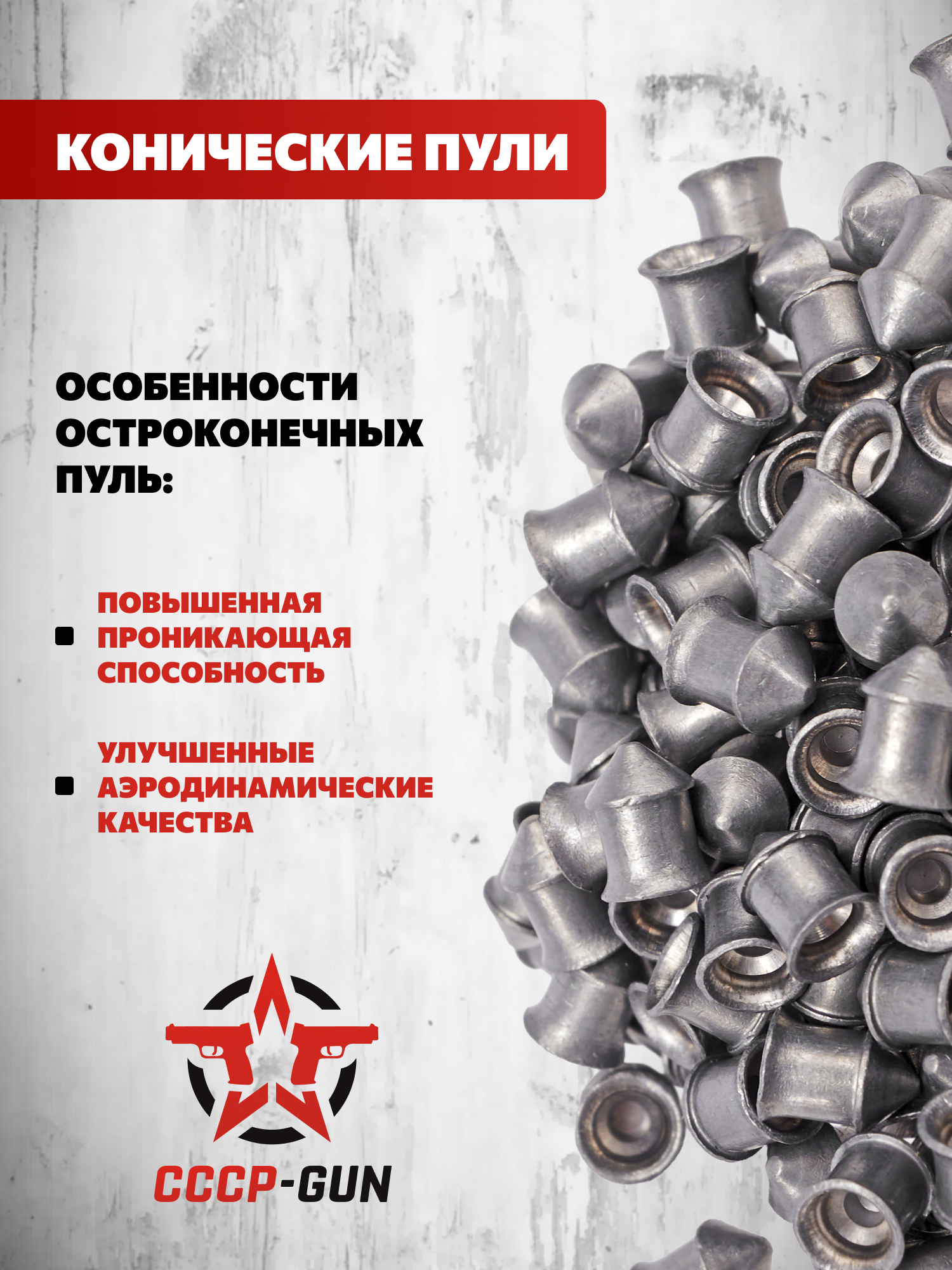 Эти снаряды выполнены из свинца и имеют коническую головную часть с заостренным наконечником. Такая форма помогает удерживать динамику, а также повышает пробивное действие при попадании по мишеням с крепкой структурой. Масса 0.57 г делает их подходящими для стрельбы из винтовок и пистолетов средней мощности.