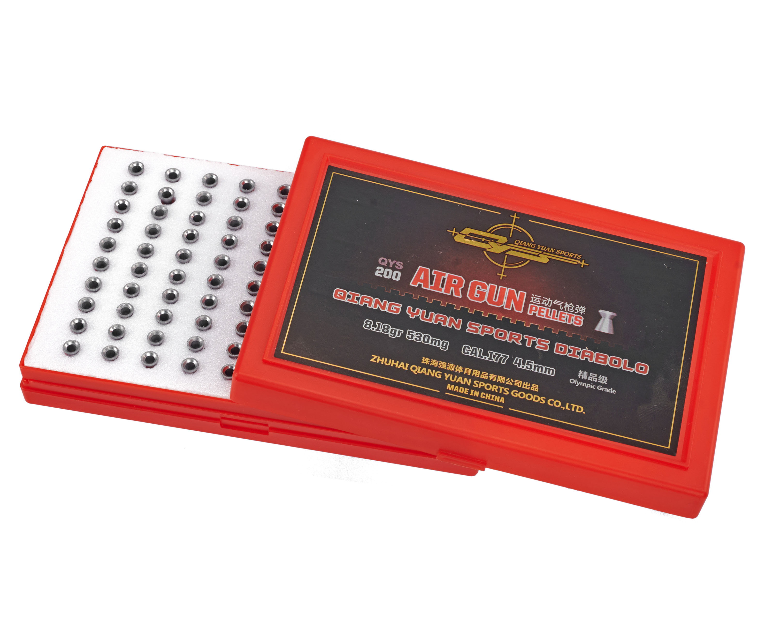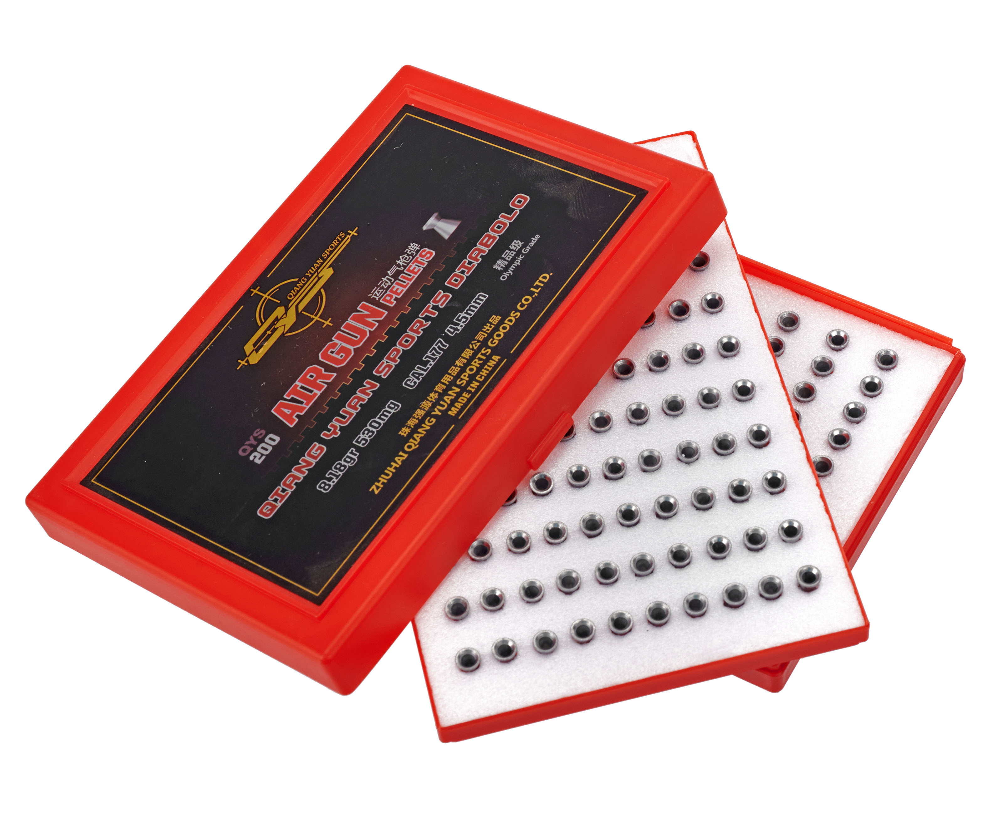 Упаковка включает 200 боеприпасов, размещенных в красивом красном кейсе, что добавляет эстетичности. Полимерная тара с надежной крышкой защищает содержимое от пыли и повреждений. Qiang Yuan пули для пневматики расположены в предусмотренных для них отсеках, не касаясь один другого.
