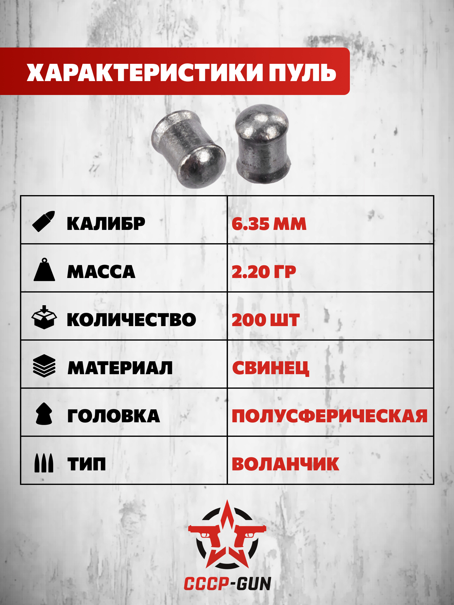 Пуля 6.35 мм для пневматики выполнена в форме полусферы (тип Domed). Эта геометрия дает аэродинамическую устойчивость с умеренным торможением при столкновении. Снаряды с такой формой сохраняют траекторию лучше, чем плоские или острые, и демонстрируют уверенное поведение на всех дистанциях.