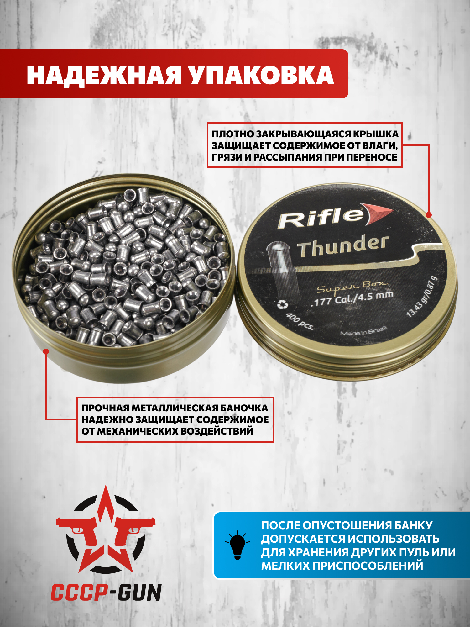Бразильская компания Райфл известна созданием боеприпасов, сочетающих стабильность полета и высокую кучность. Каждая модель проходит испытания и отбор на заводе с применением жестких стандартов. Пули Rifle Thunder - результат оптимизации баллистических характеристик под нужды спортивной и развлекательной стрельбы.