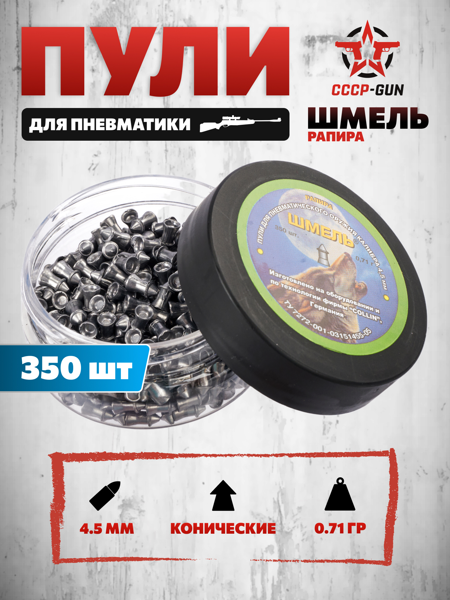 Описание пневматических пуль Шмель Рапира 4.5 мм (0.71 г, 350 шт)