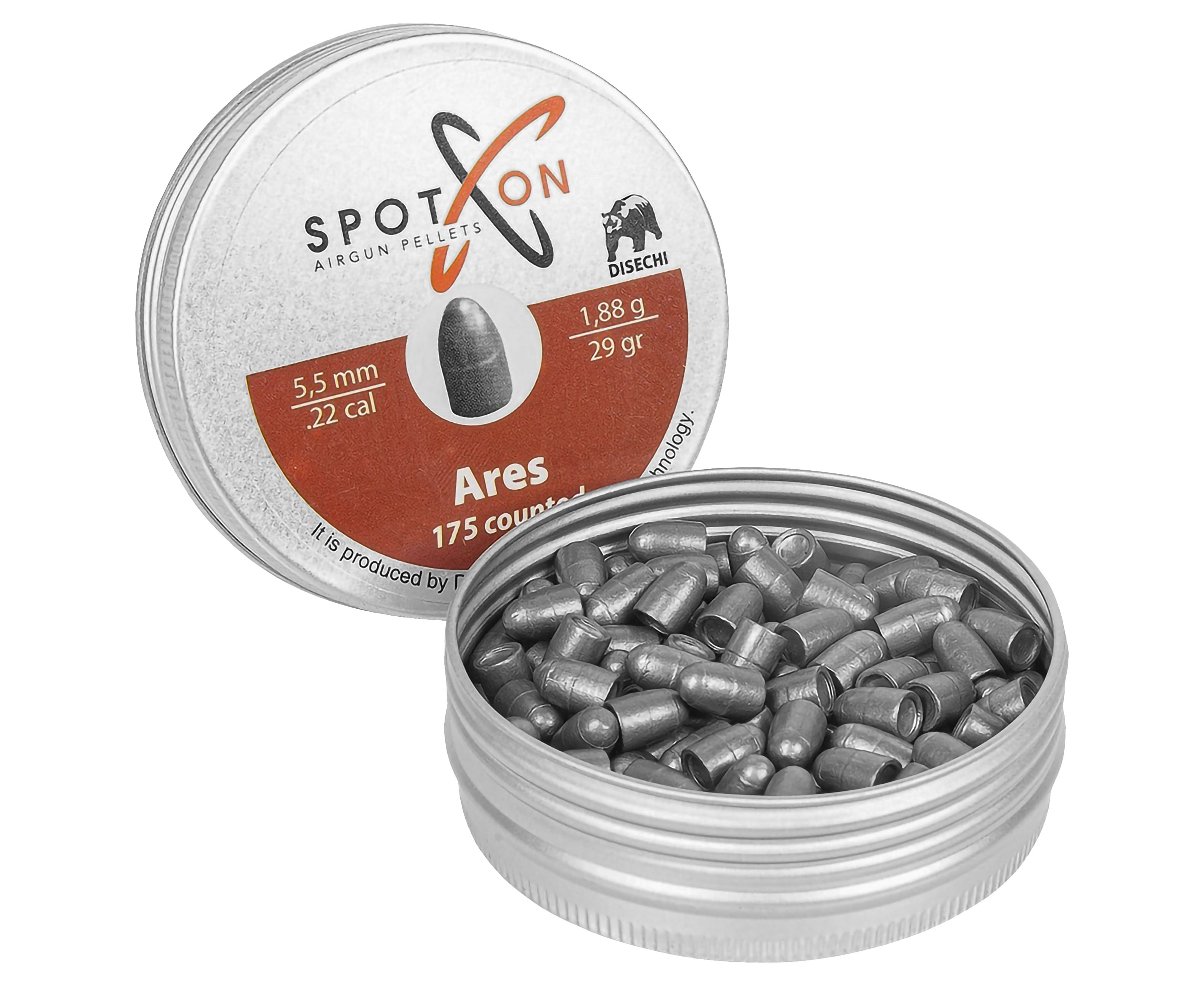 Турецкий бренд Spoton использует передовые итальянские технологии при изготовлении пневматических боеприпасов. Производитель сочетает точную механику формовки и передовые методы контроля качества. Модель Ares 5.5 мм ориентирована на владельцев мощных PCP-винтовок, где критичны стабильность траектории и меткость при стрельбе.