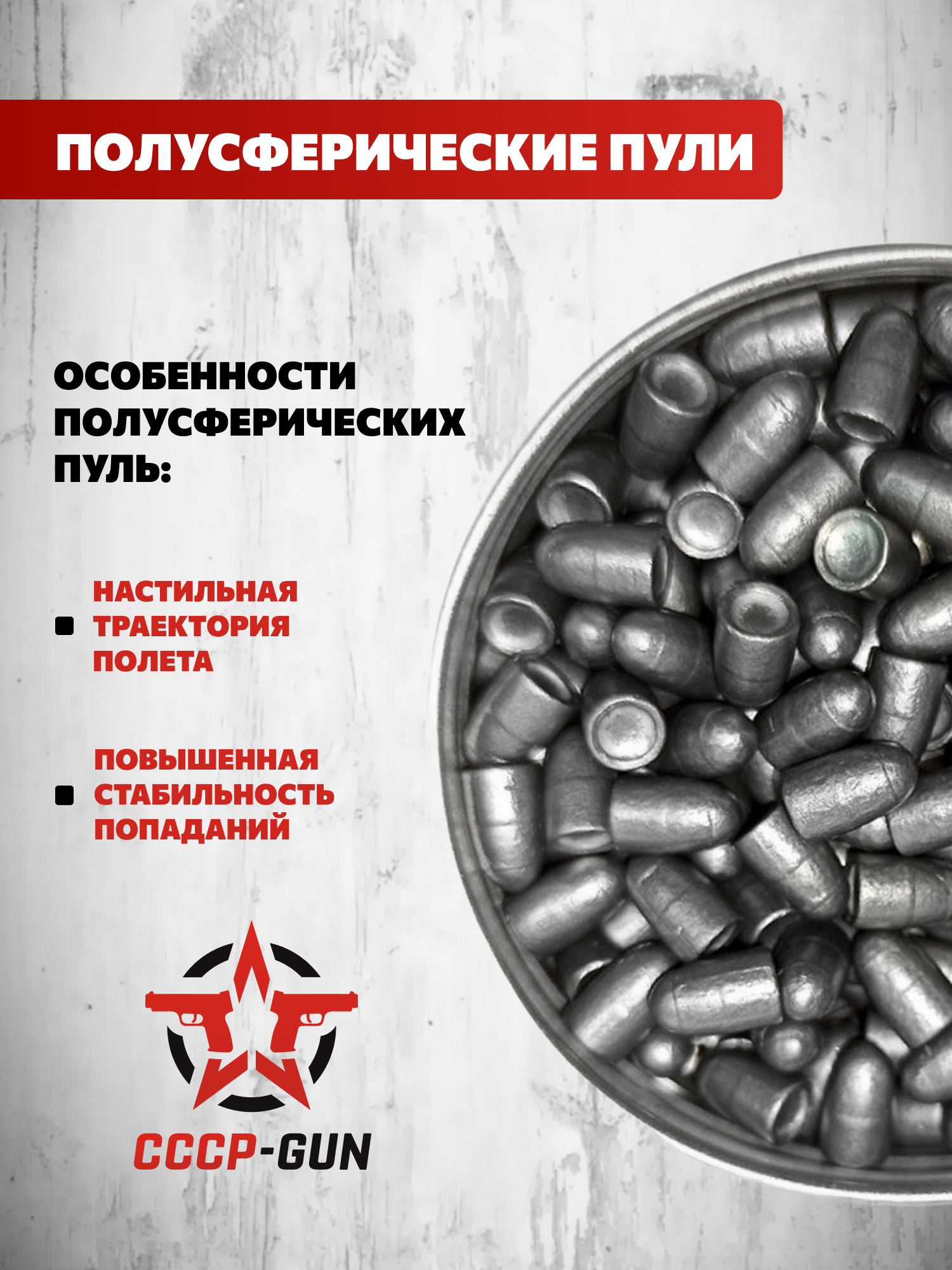 Полусферическая верхняя часть уменьшает сопротивление воздуха и помогает равномерному вращению пули по нарезам канала. Такая геометрия позволяет сохранить траекторию даже в плохую погоду или при порывах ветра. При изготовлении используется свинцовый сплав, отличающийся однородной плотностью и снижающий риск повреждений бланка при выстреле.