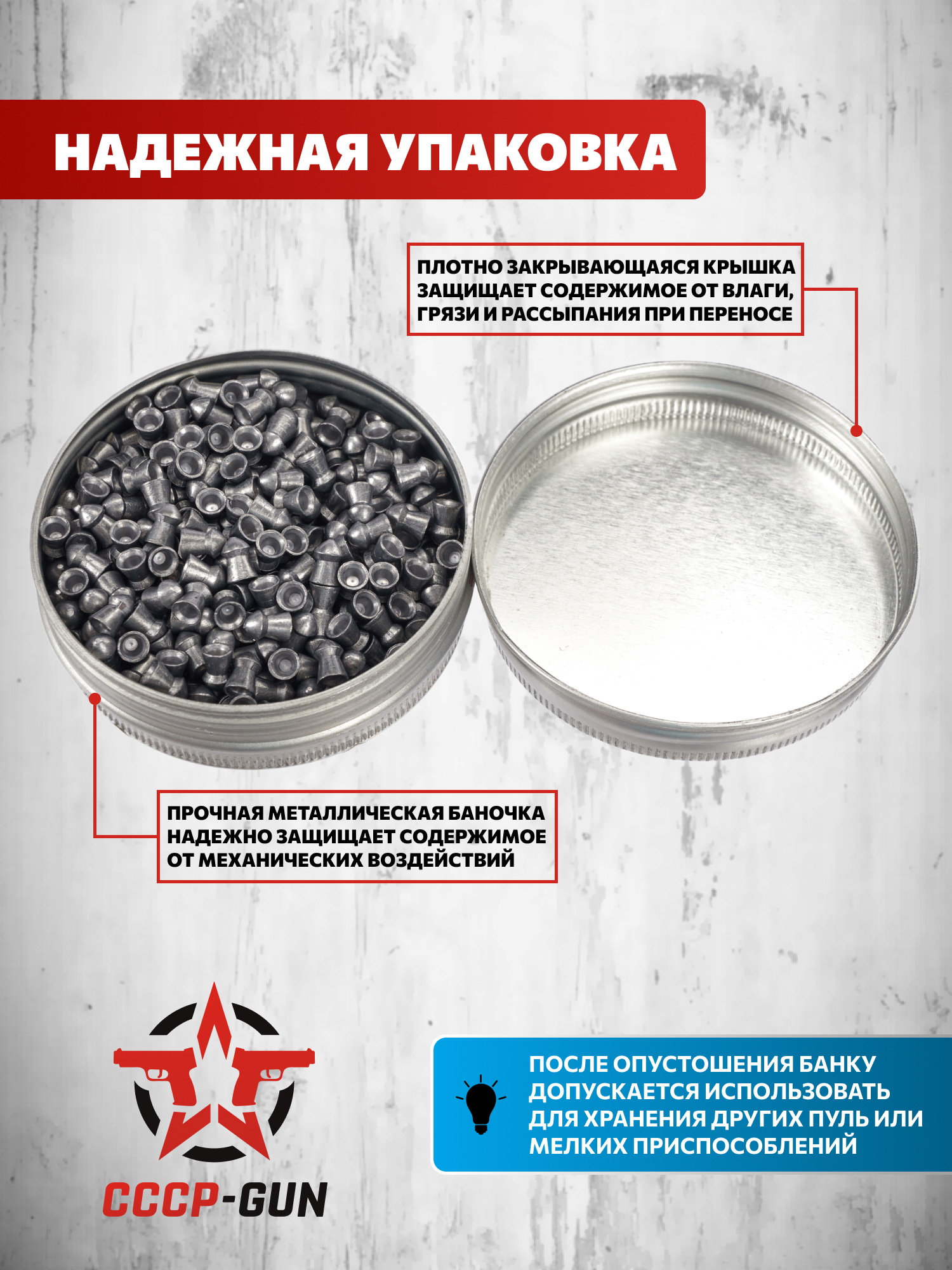 Упаковка Спотон Поинтед включает 400 пуль, что удобно для продолжительных сессий. Металлическая банка с резьбовой крышкой защищает содержимое от влаги и ударов. Контейнер упрощает транспортировку на стрельбище.