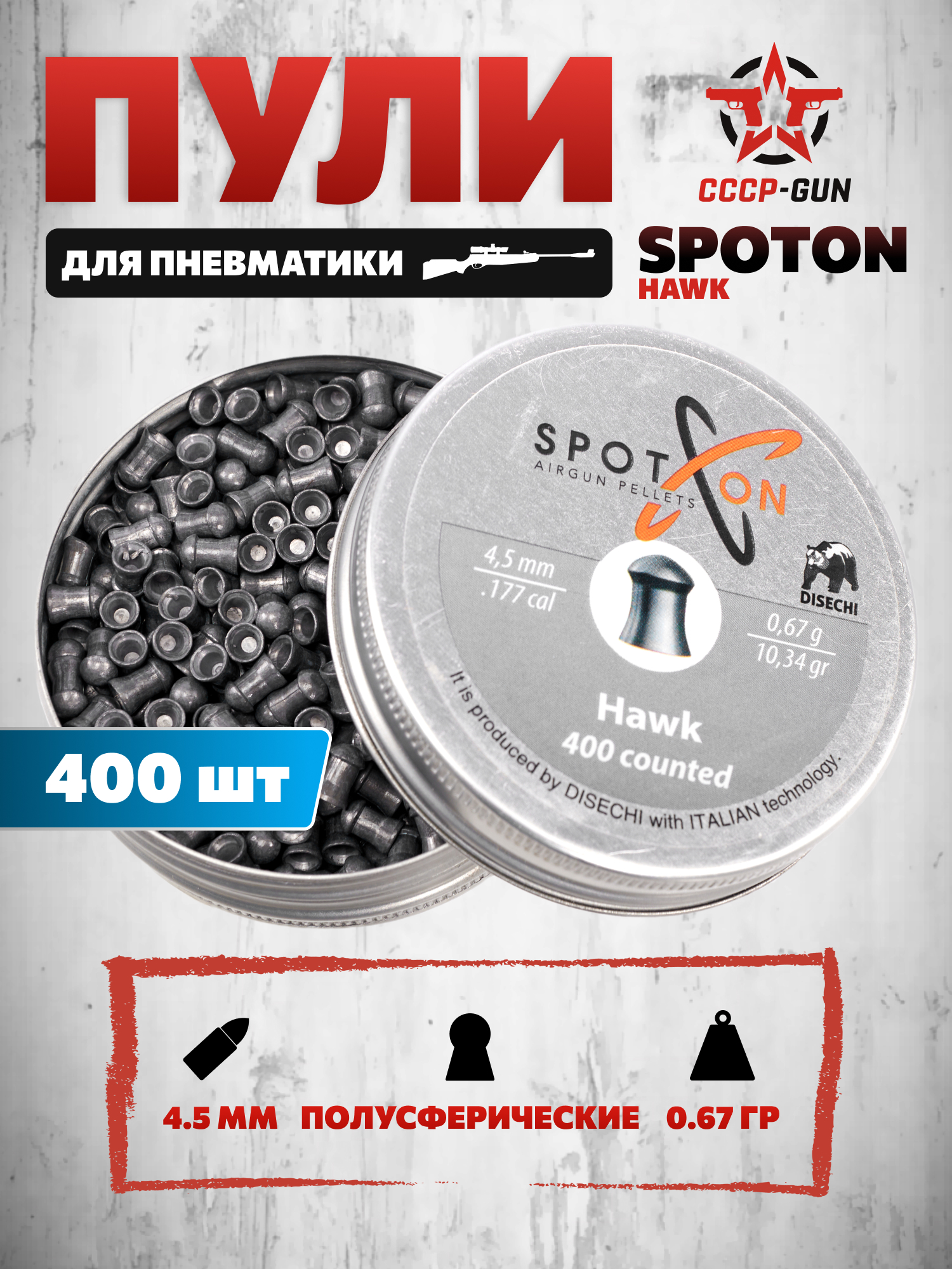 Ассортимент зарядов этого предприятия представлен изделиями всевозможного диаметра, веса и конфигурации передней секции. Рассматриваемая линейка Hawk выступает как универсальное решение благодаря сбалансированным параметрам, подходящим для стрелков любого уровня подготовки. Образцы калибра 4.5 мм характеризуются традиционной конструкцией воланчика и изготавливаются из свинцового сплава.