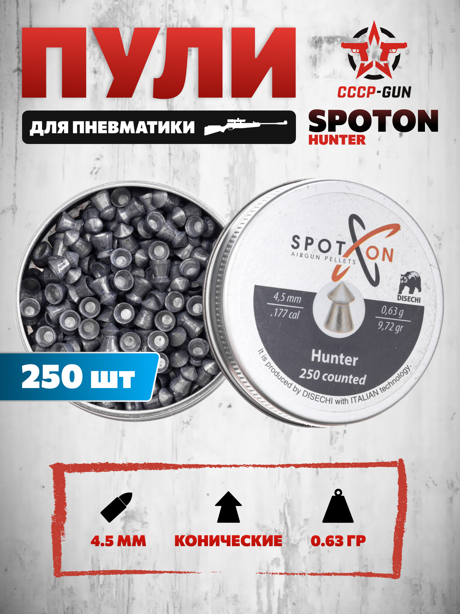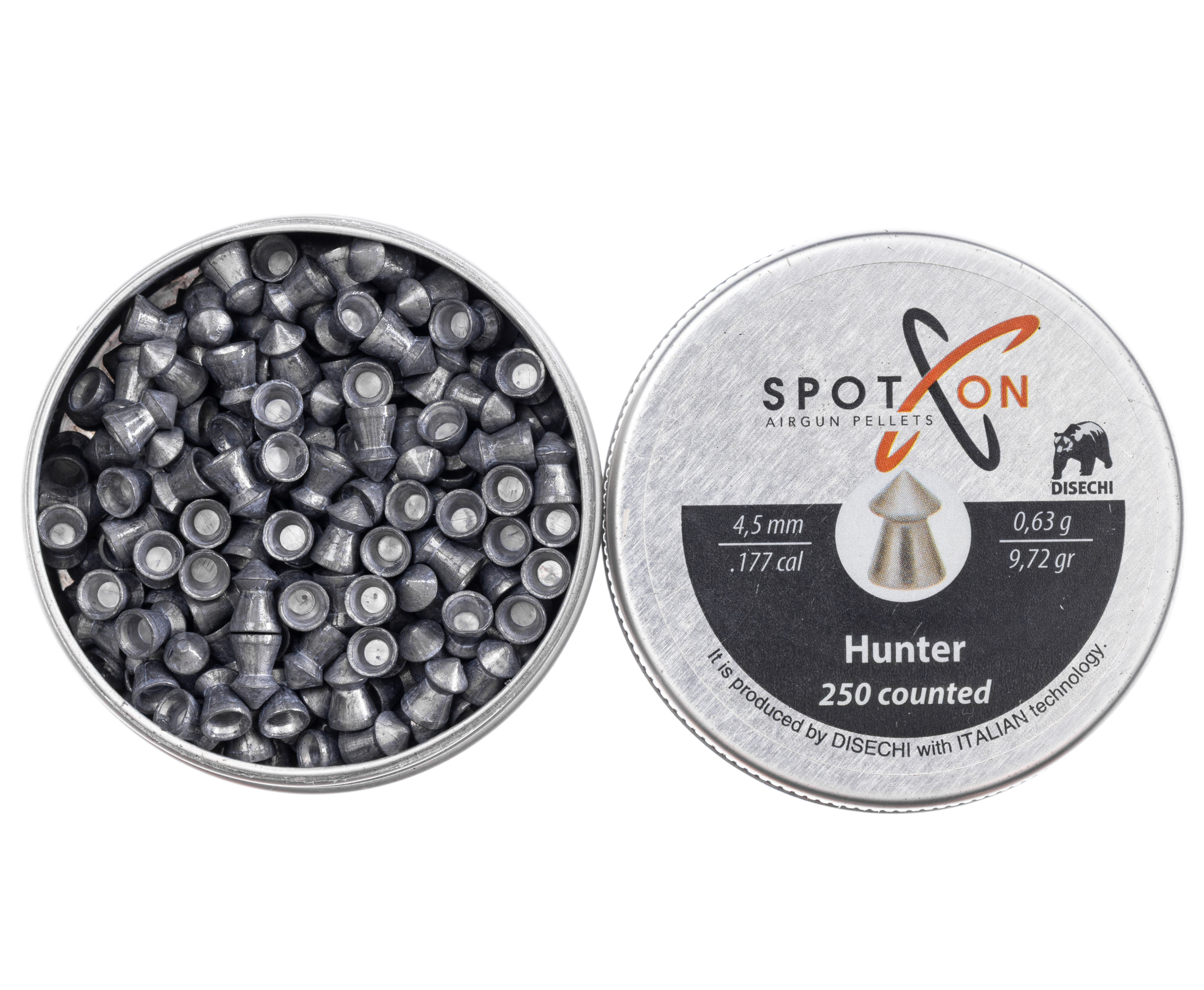 Боеприпасы Hunter выступают стандартом в нише пневматики ввиду традиционного калибра 4.5 миллиметра. Конструктивной особенностью разработки стала заостренная коническая геометрия головной части, повышающая пробивную способность и гарантирующая минимальное сопротивление при движении. Последняя характеристика способствует сохранению стабильной траектории на всем протяжении полета, что важно при стрельбе на средние и дальние дистанции.