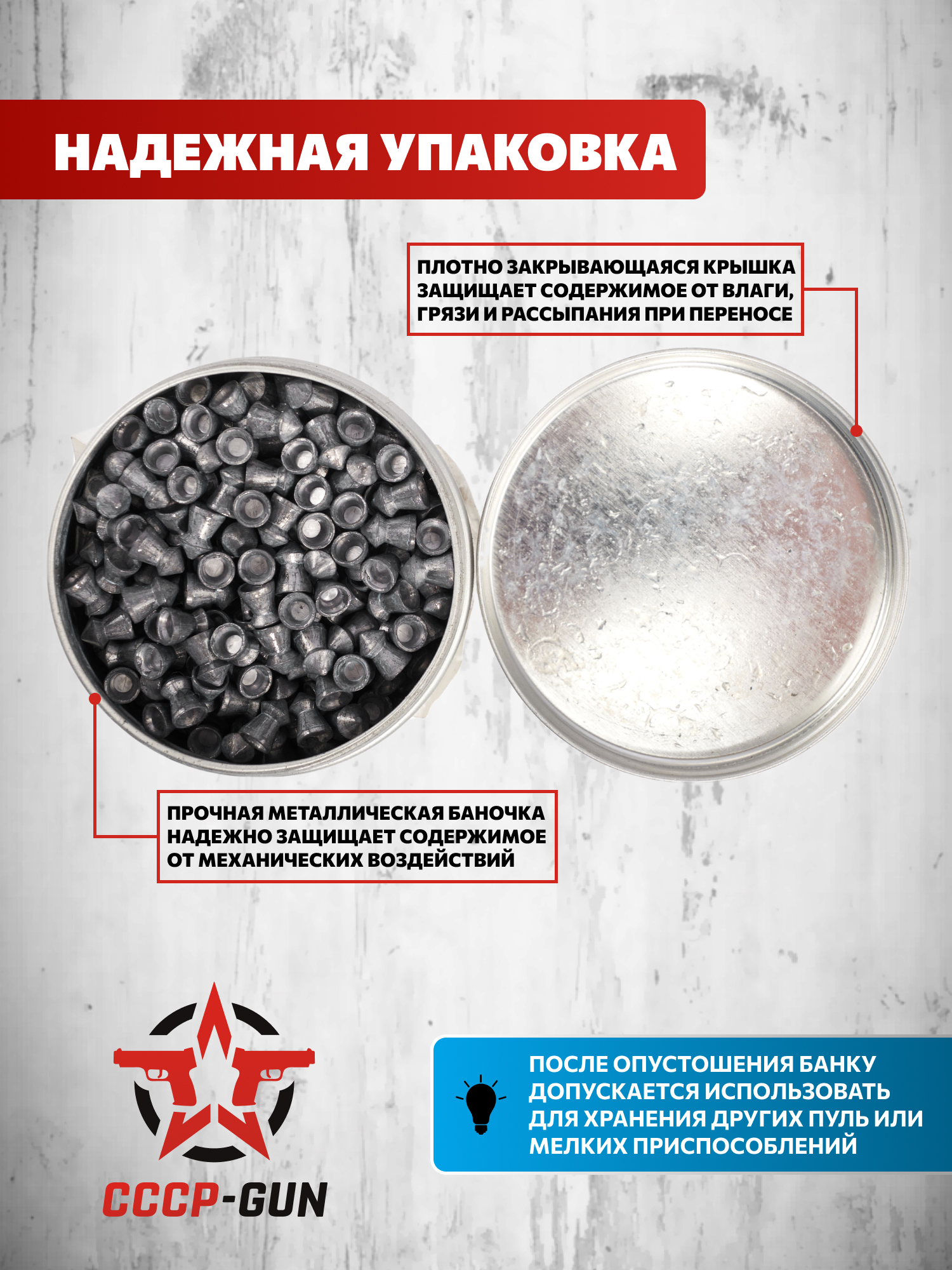 Для удобства хранения и транспортировки пневматические пули 4 5 мм упаковываются в прочные металлические баночки, каждая из которых содержит 250 снарядов. Тара предотвращает загрязнение содержимого и предотвращает попадание влаги, а компактные размеры допускают ее размещение в карманах экипировки, не занимая много места.