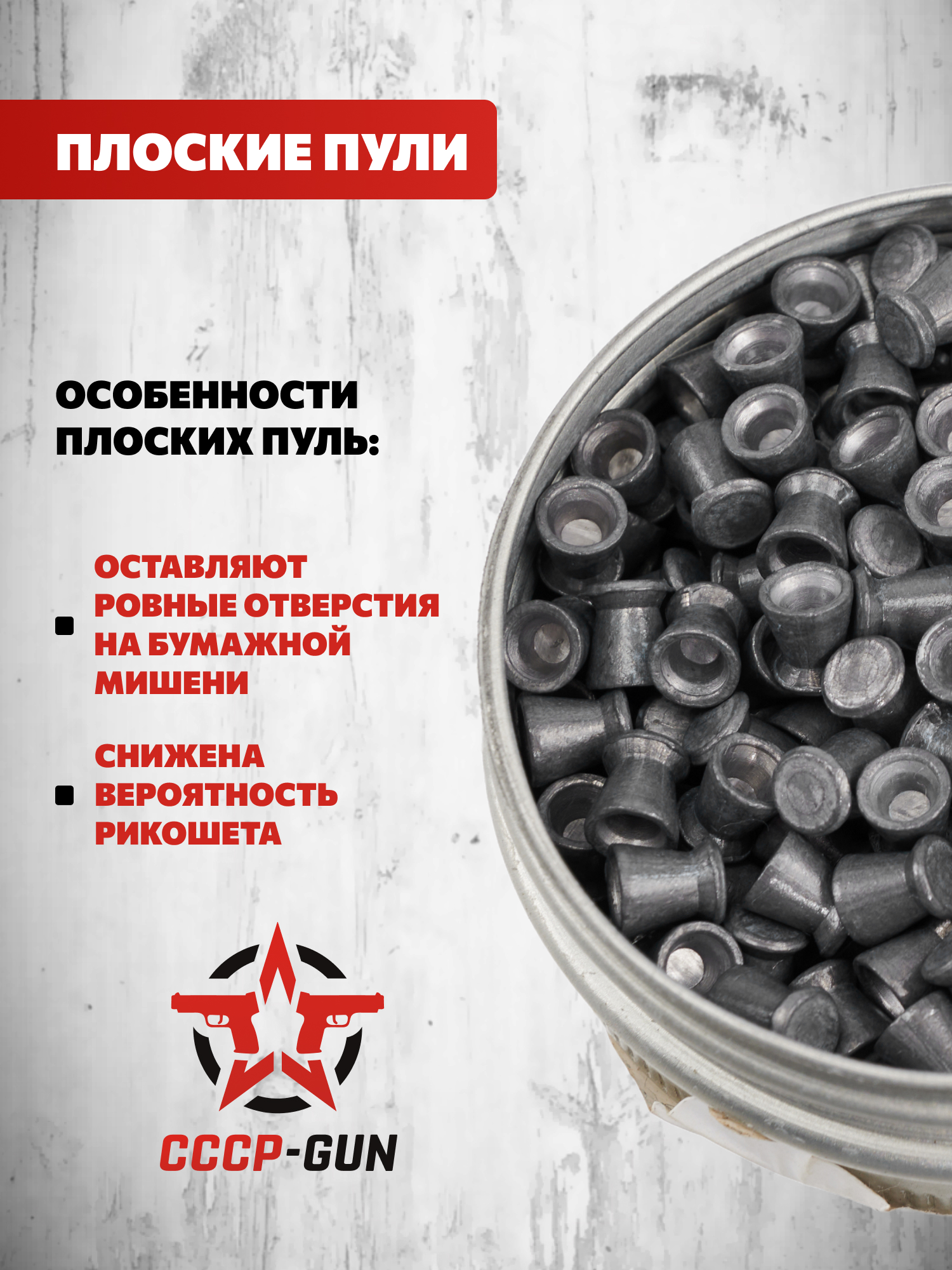 К указанной линейке относятся обозреваемые пули - отличительной чертой этих изделий выступает уплощенная фронтальная зона, которая снижает вероятность отскока при столкновении с твердыми препятствиями, что в свою очередь повышает безопасность проведения стрельб в закрытых тирах. Параллельно указанная конструкция формирует аккуратные отверстия в мишенях, упрощая визуальную оценку точности попаданий. Весовой параметр одной штуки в партии составляет 0.6 грамма, что важно учесть относительно мощности пневматики.