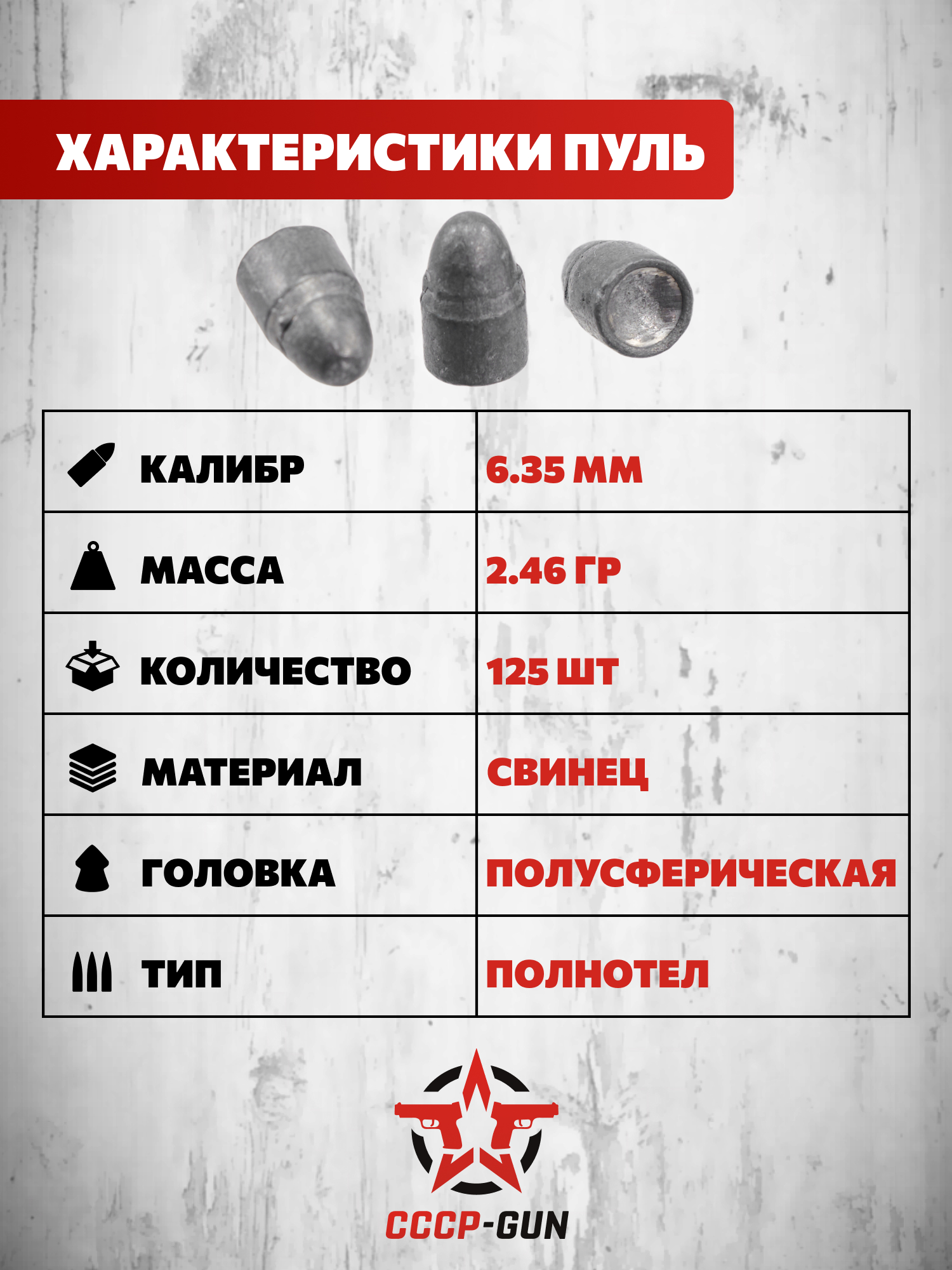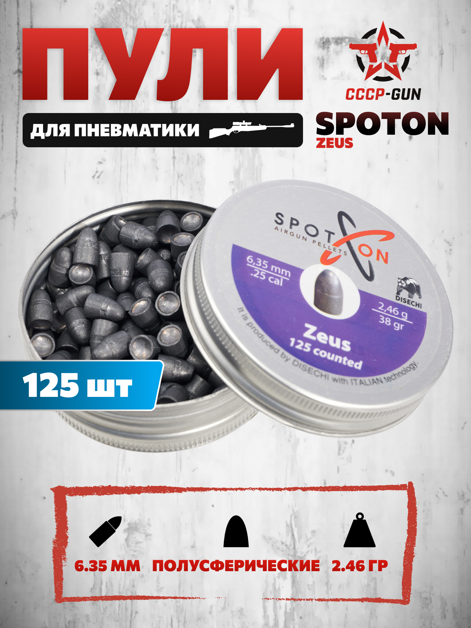 | Комплект поставки | Пули - 125 шт, упаковка |