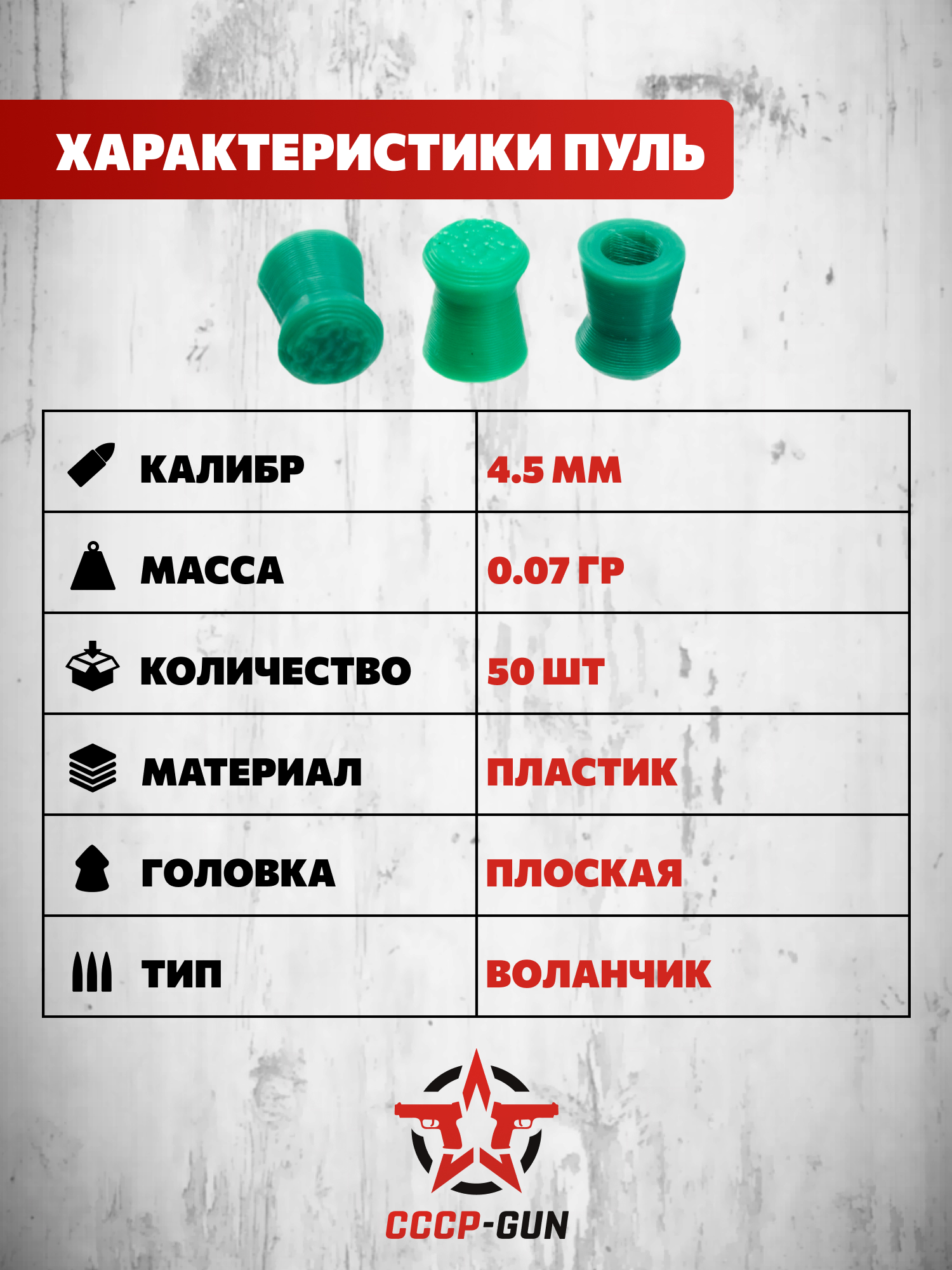 | Комплект поставки | Пули - 50 шт, упаковка |