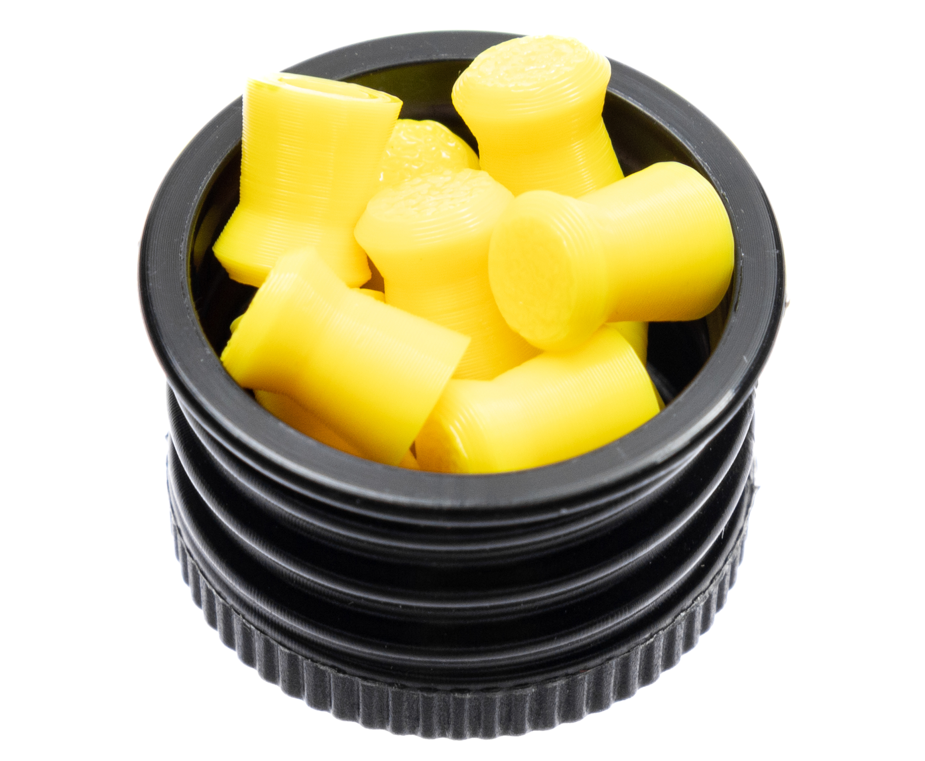 Плоскоголовая конфигурация головки стабилизирует вектор движения на начальном этапе траектории, повышая кучность попаданий. Благодаря желтому цвету "воланчиков" пользователь контролирует результаты стрельбы, а поиск упавших пуль заметно упрощается.