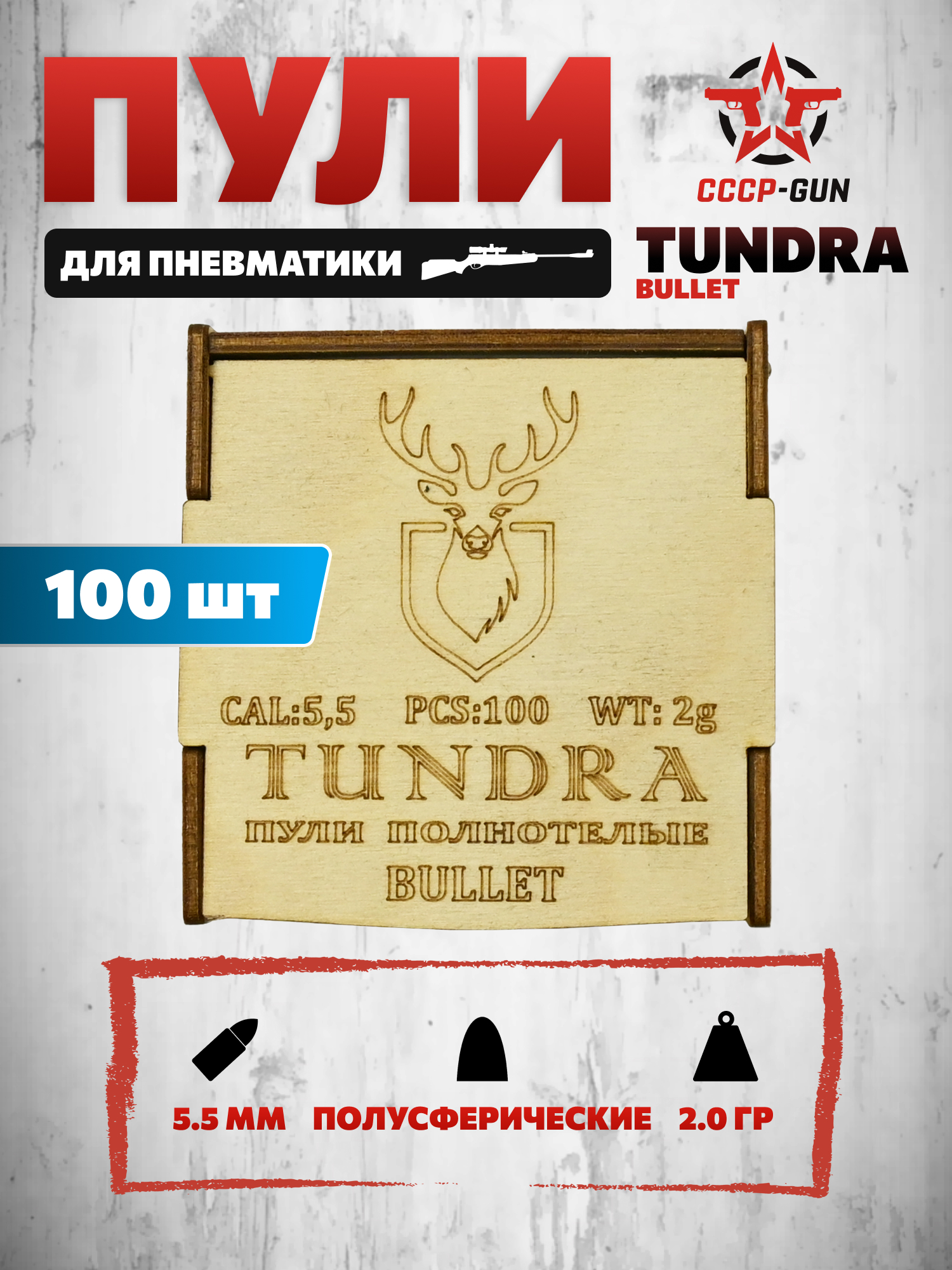 Линейка полнотелых зарядов Tundra Bullet разработана для применения с винтовками и пистолетами, оснащенными бланками калибра 5.5 миллиметра. Материалом для выполнения выступил свинец с использованием высокоточных станков, что гарантирует соответствие массы и геометрии между боеприпасами. Каждая полнотел пуля в пределах партии весит 2 грамма.