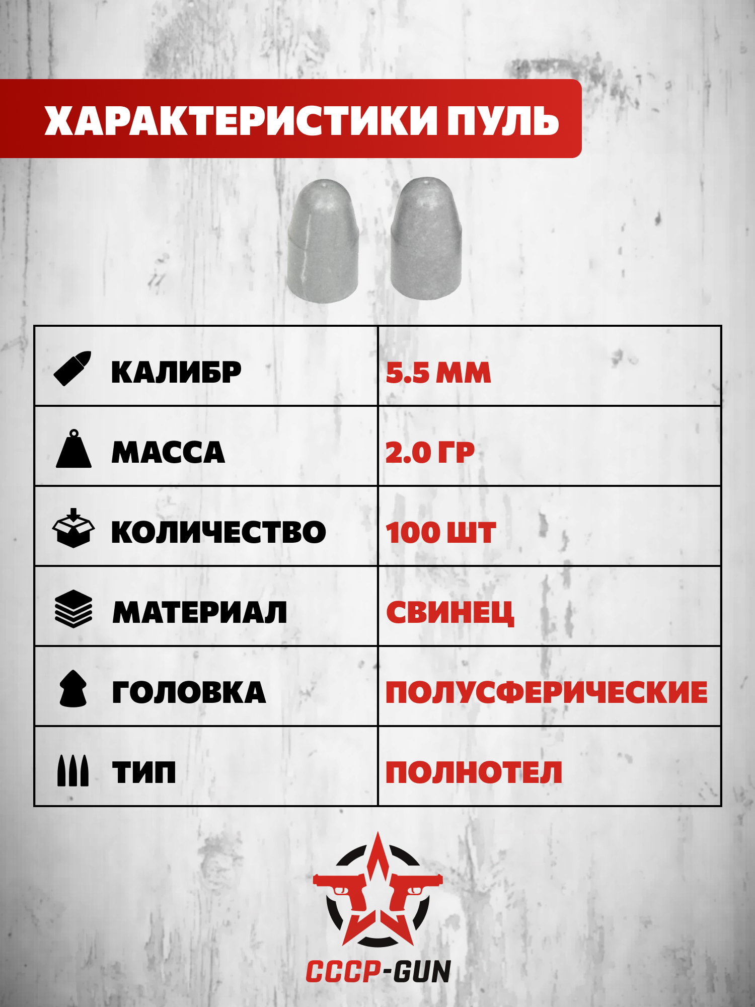 | Комплект поставки | Пули - 100 шт, упаковка |