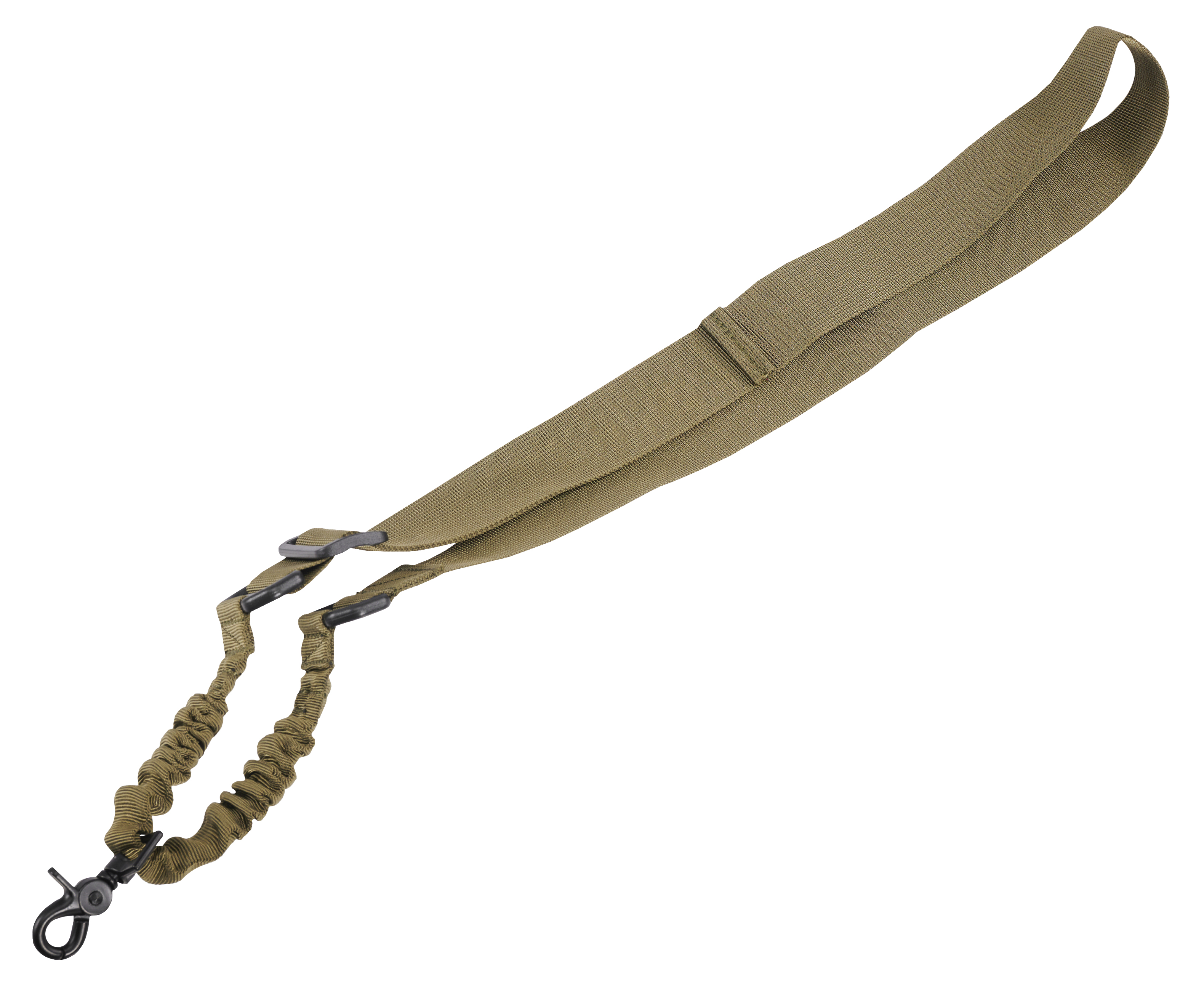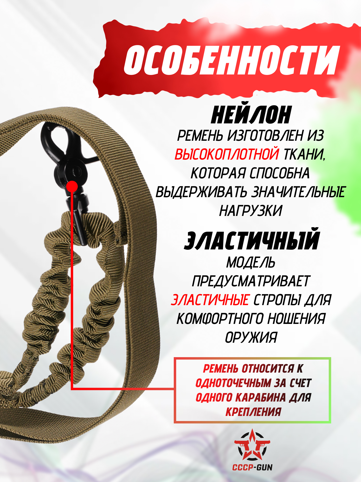 Представленный формат ремня называют одноточечным - в отличие от иных моделей здесь предполагается крепление только за ту антабку, что располагают на прикладе. Благодаря этому обеспечивается страховка автомата, и в тот же момент рассматриваемый элемент снаряжения не создает проблем с управлением им. Подобное решение уместно в ситуациях, когда стрелку не требуется надолго расставаться с оружием.