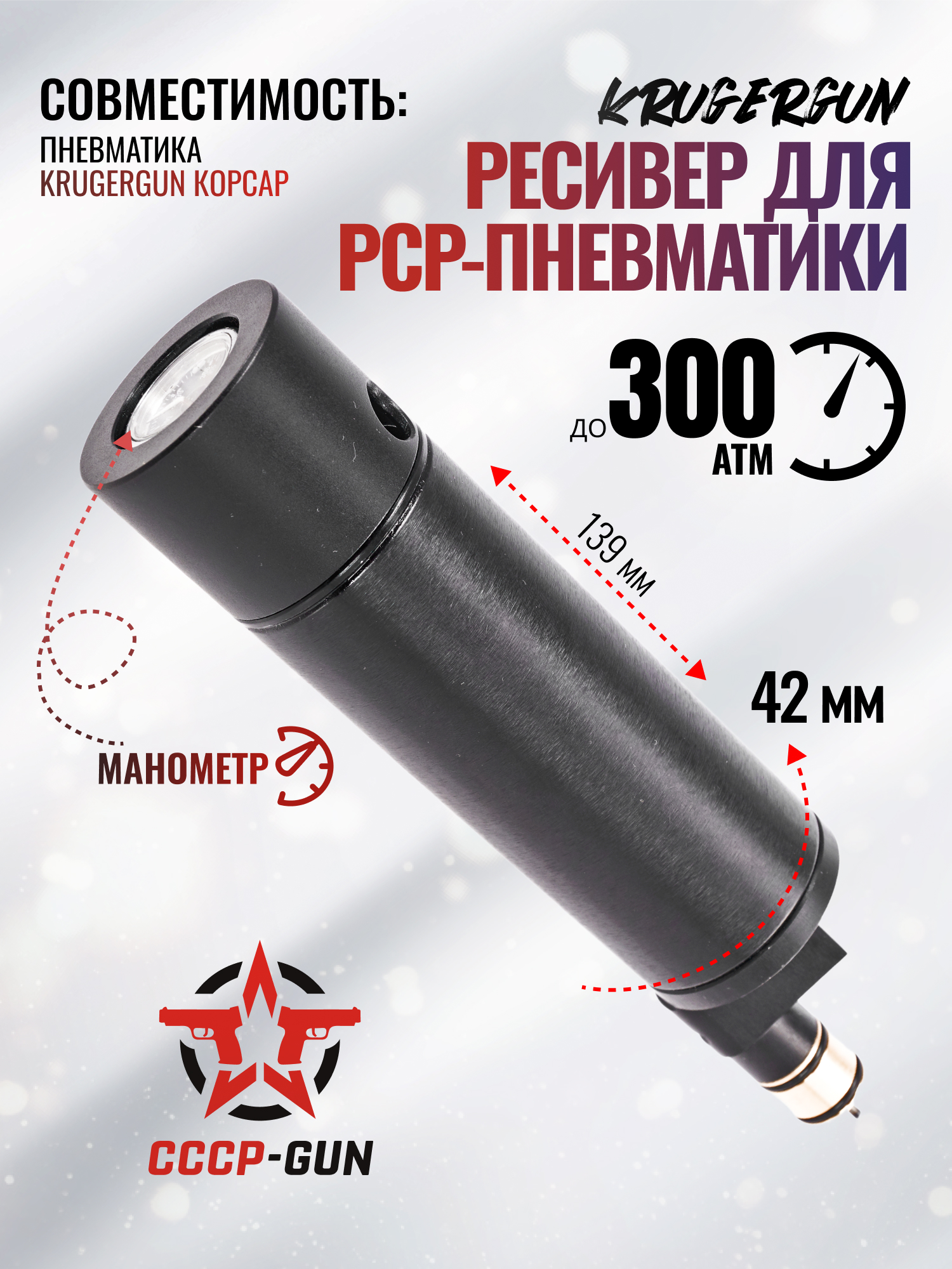 Резервуар KrugerGun Корсар D42 (без редуктора, 139 мм, манометр)