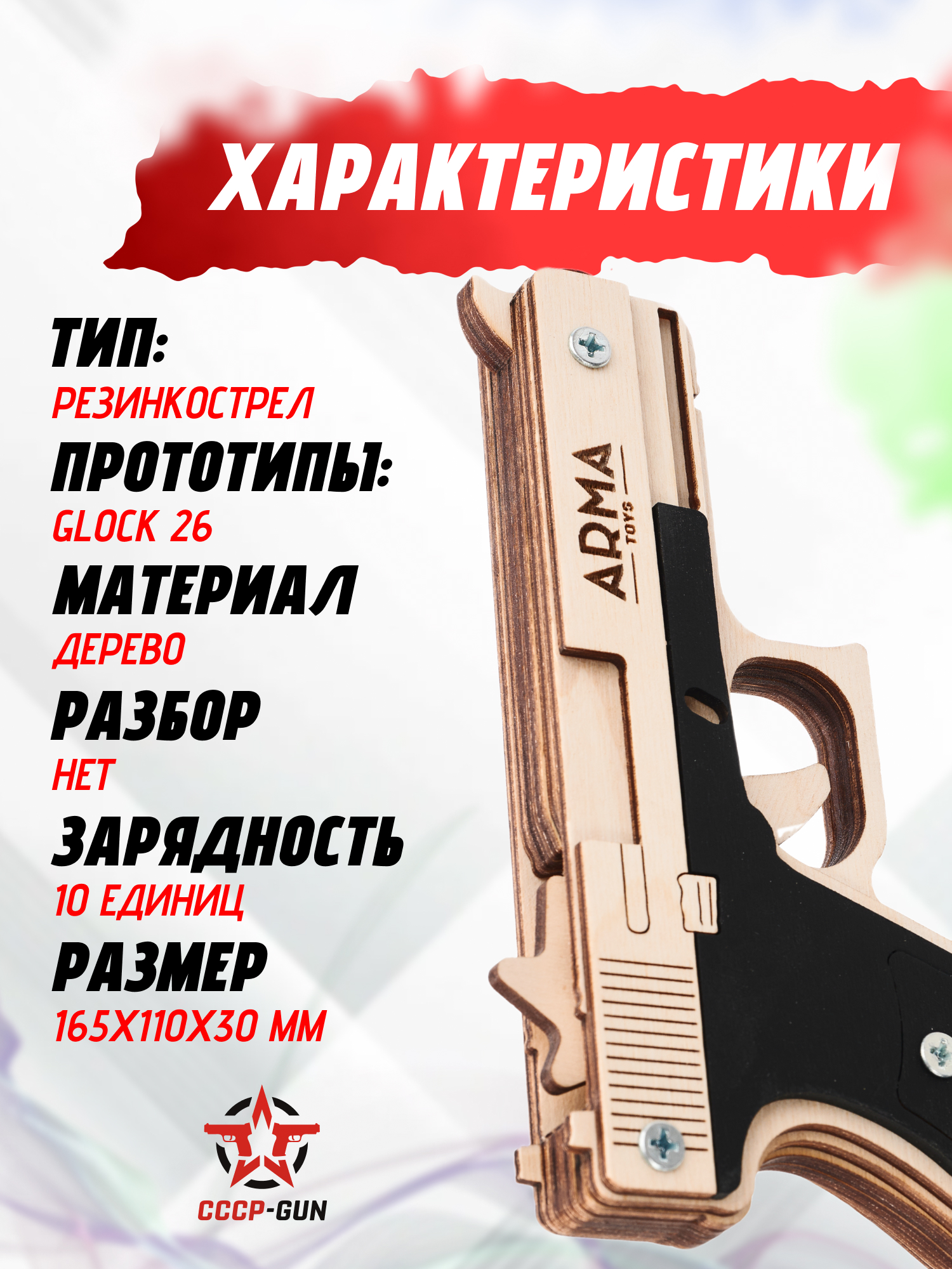 Резинкострел Arma Toys пистолет Глок Компакт (макет, Glock 17, ATL001)