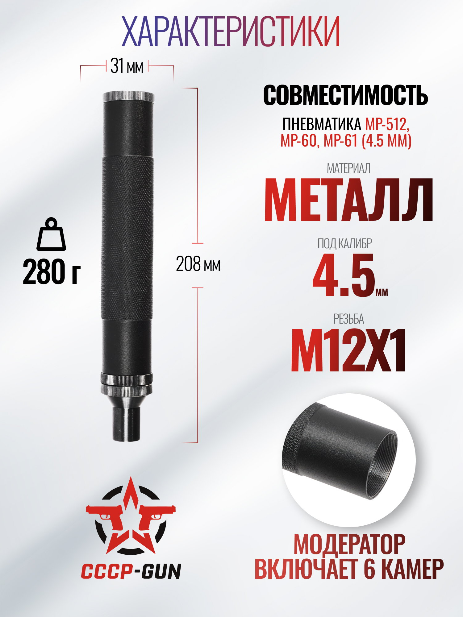 Саундмодератор Петр Тюнинг (МР-512, МР-60, МР-61, 6 камер, M12x1)