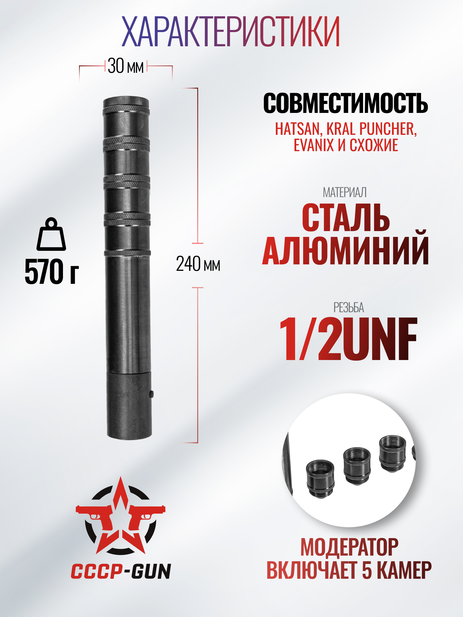 Саундмодератор Петр Тюнинг (МР-512, МР-60, МР-61, 6 камер, M12x1)