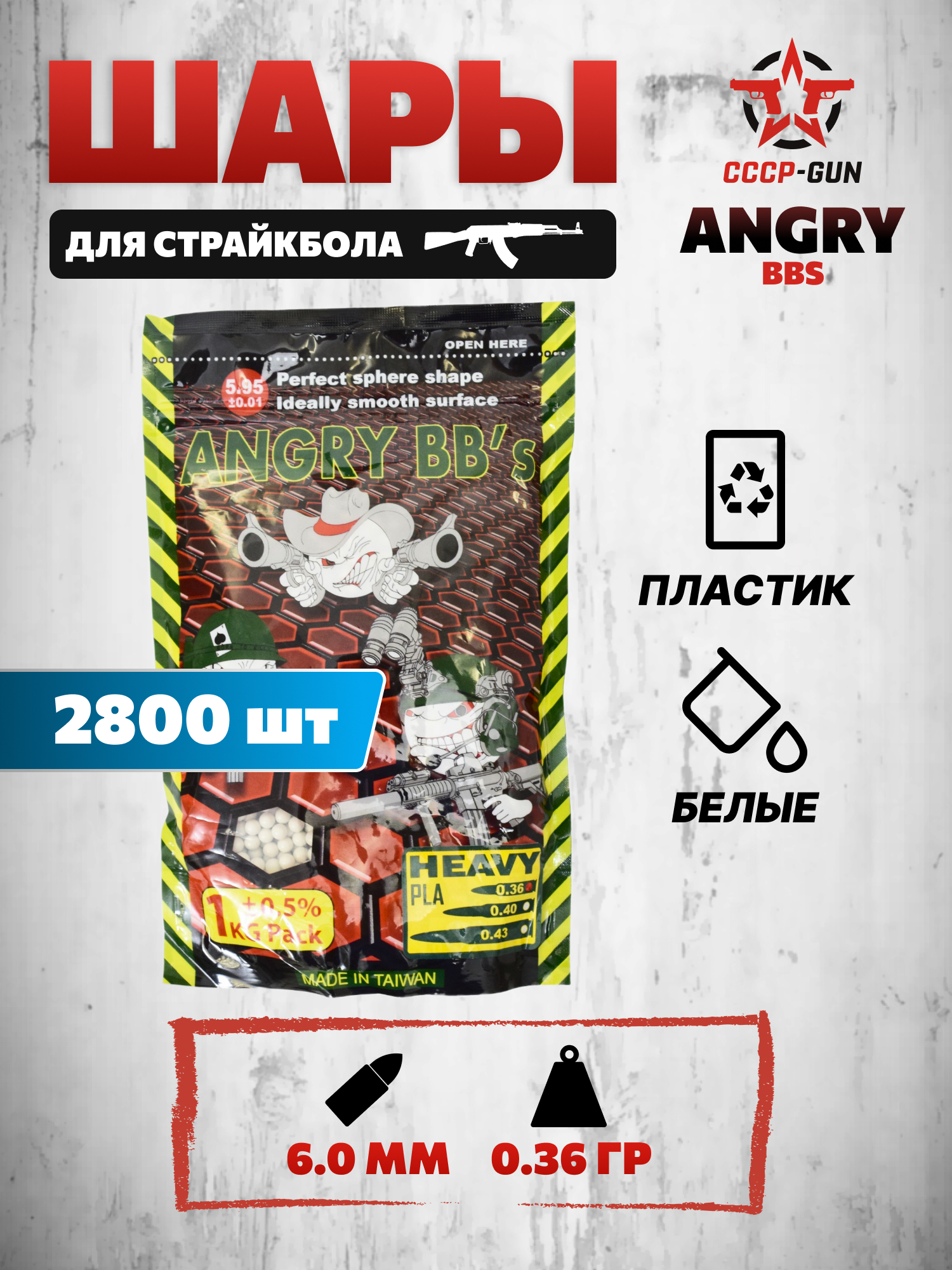 Шарики для страйкбола Angry BB's 0.36 г (белые, 2800 штук, 1 кг)