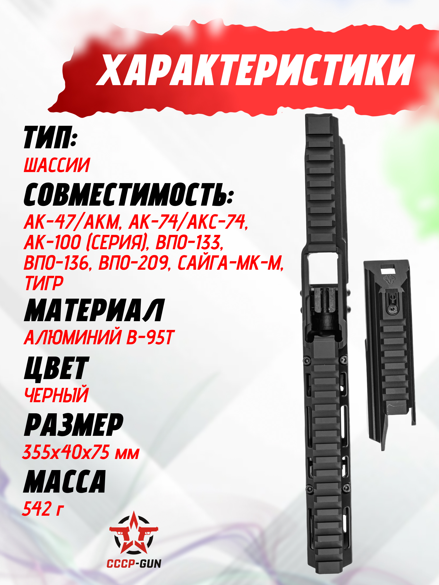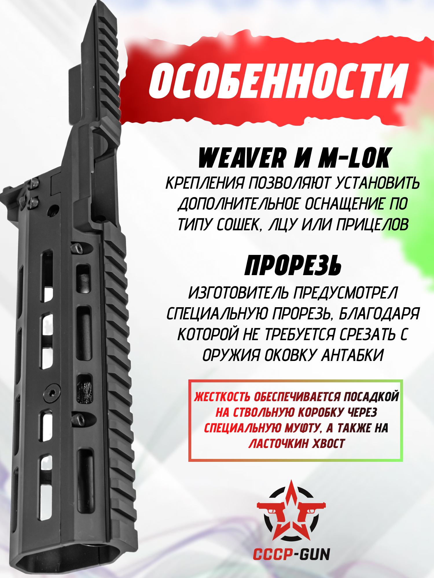 | Комплект поставки | Аппер-кронштейн, цевье со вставкой, газовая трубка, винты крепления, задняя крышка, упаковка |