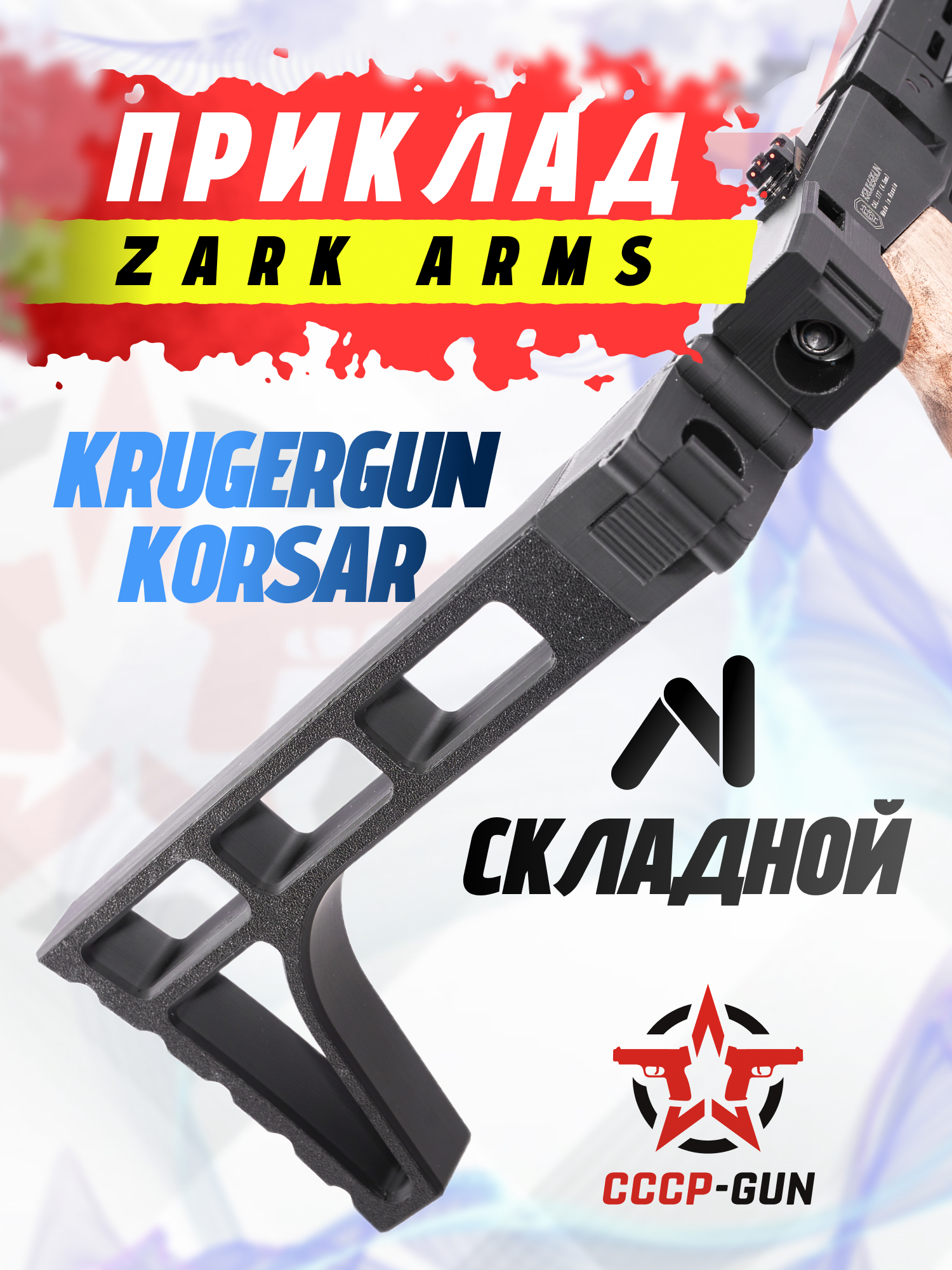 Обозреваемый складной приклад Корсар Krugergun Zark модели KGP1.001 изготавливается с помощью технологии Fused Deposition Modeling на промышленном принтере высокоточного трехмерного позиционирования. Фирма Зарк изготавливает свой обвес используя расплавленный полимерный материал, который тонкими слоями, путем 3Д печати, укладывается и образует единую структуру. Готовые изделия после остывания выдерживают температуру от -40 до +65 градусов, не боясь холода и жары.