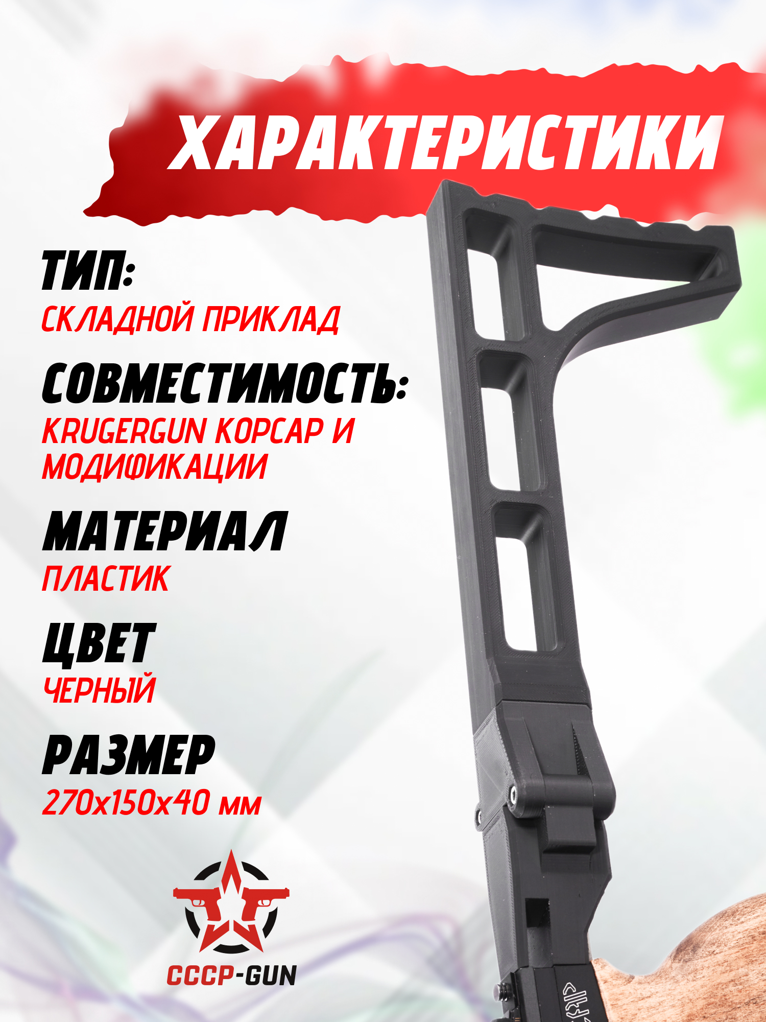 Для того чтобы сложить приклад понадобится нажать на кнопку фиксатора и свернуть конструкцию в левую сторону. При стрельбе из пистолета КрюгерГан Корсар в обвесе Зарк Армс стоит понимать, что детали обладают прочностью под стандартный тип работы с оружием и не предназначены для экстремального использования с ударами деталей о твердые поверхности и падения конструкции с большой высоты. Помимо этого, не рекомендуется держать изделие продолжительное время под палящим солнцем, так как УФ-лучи негативно влияют на полимер.