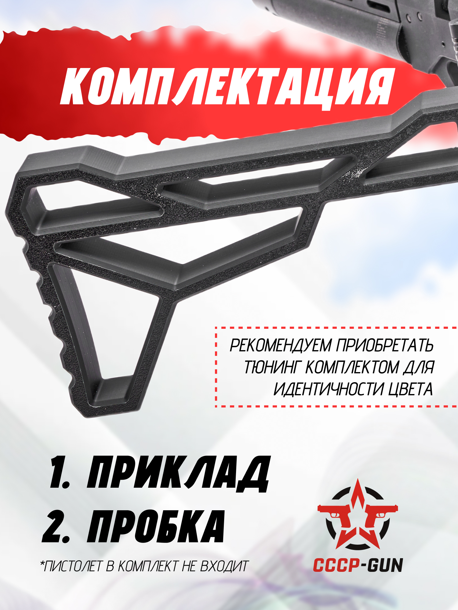 Полезной чертой представленного приклада считается опция складывания, благодаря которой пистолет с установленным обвесом легко хранить. Более того тюнинг не восприимчив к жаре, морозу и влажности поскольку полимерный материал выдерживает температурные условия при -40/+65 градусов Цельсия.